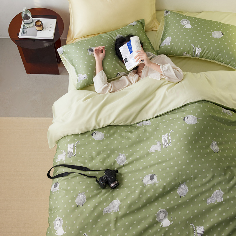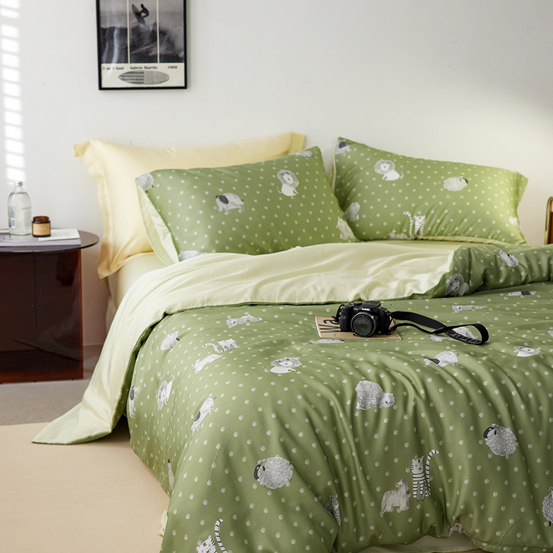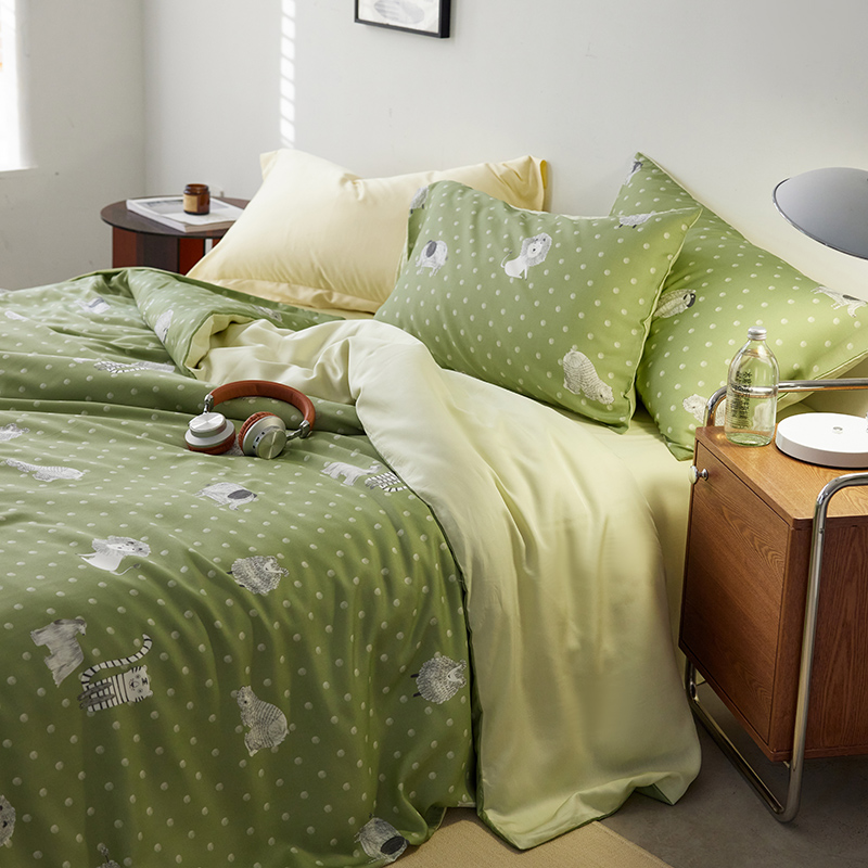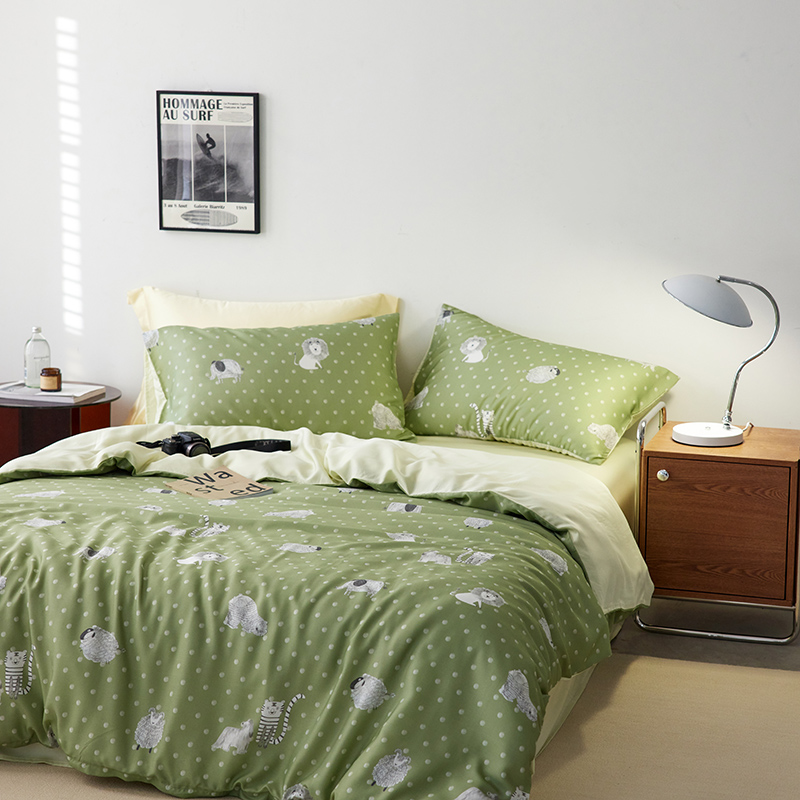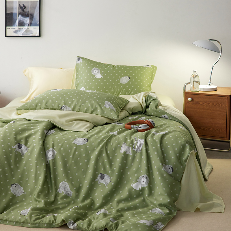 时年家纺 2024春夏新品莱赛尔天丝印花四件套 辛巴一家