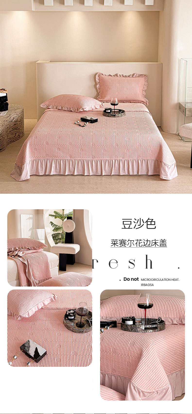 商品名称:源舜家纺 2025新款莱赛尔纯色花边夹棉床盖 豆沙色