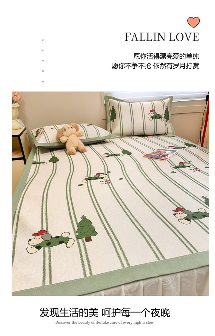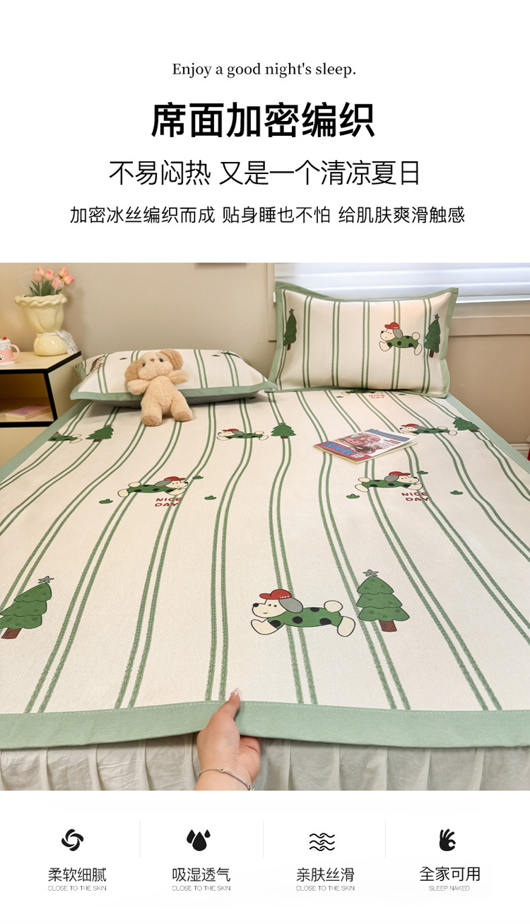 (总)慕尚家纺 2025春夏新款凉感冰丝提花凉席三件套,爱心圆点,海棠 粉,海棠 灰,海棠 蓝,花艺 红绿,花艺 灰红,花艺 灰绿,花艺 咖白,花语 灰,花语 蓝,花语 绿,水仙 粉,水仙 灰,水仙 蓝,水仙 绿,提花席 花香蓝,提花席 玫瑰之恋,提花席 棋盘格绿,提花席 树叶绿,提花席 直线绿,烟粉