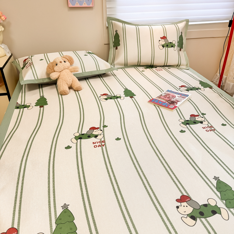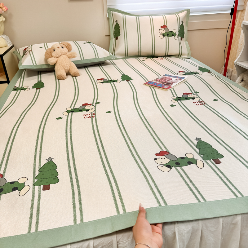 (总)慕尚家纺 2025新款全棉印花学生三件套套件,艾米熊,彩色爱心狗,铃兰花,美食派对,萌宠乐园,书生猫咪,桃心狗,汪可爱,旺旺,樱桃