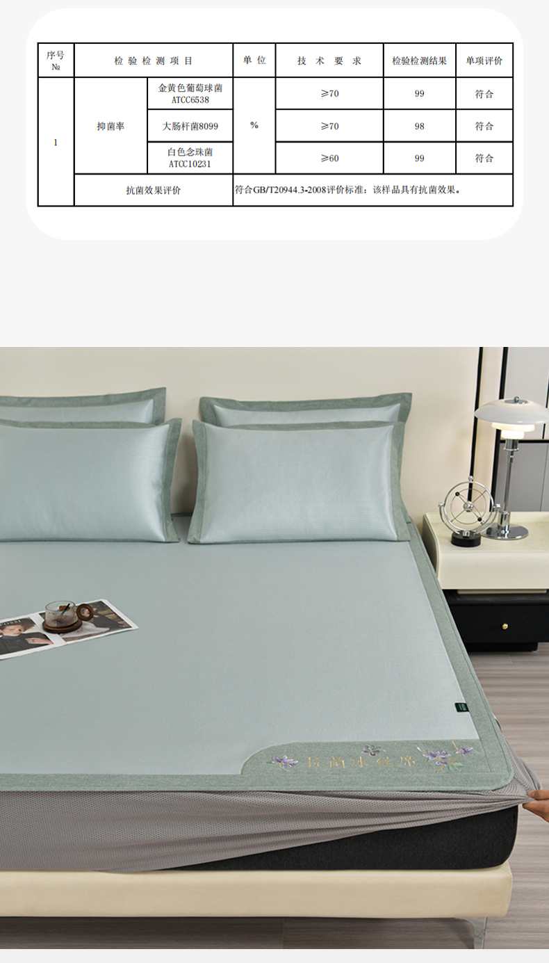 商品名称:简一 2024新款600D紫荆花开A类抗菌席 床笠款 浅绿