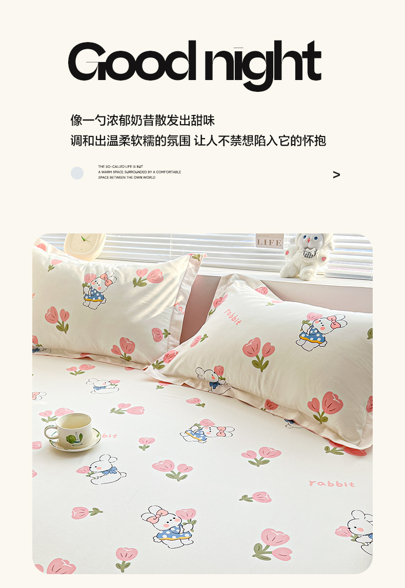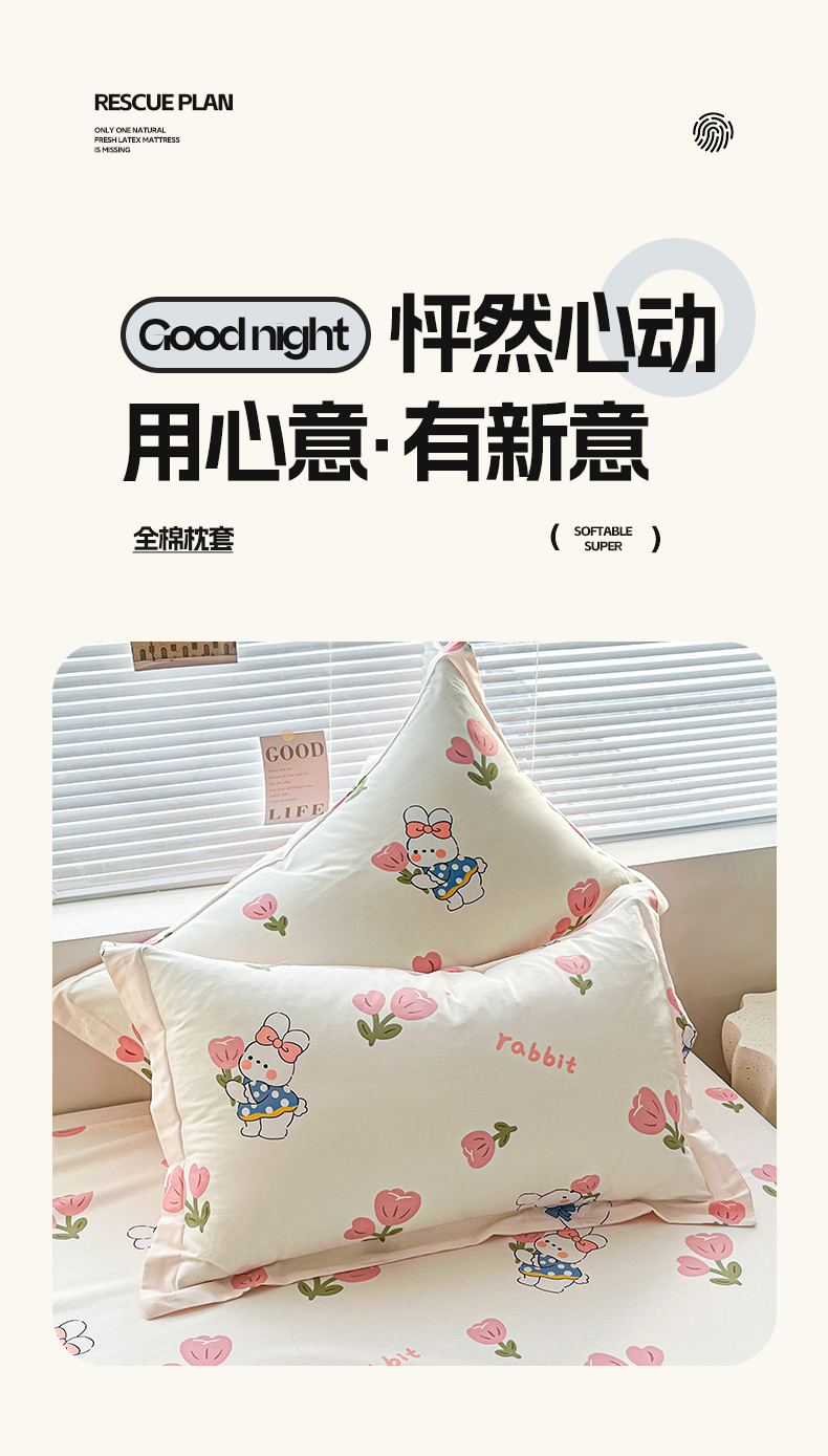 涵宸家纺 2024新款全棉小清新印花单品套件--单枕套 枕套-花丛兔