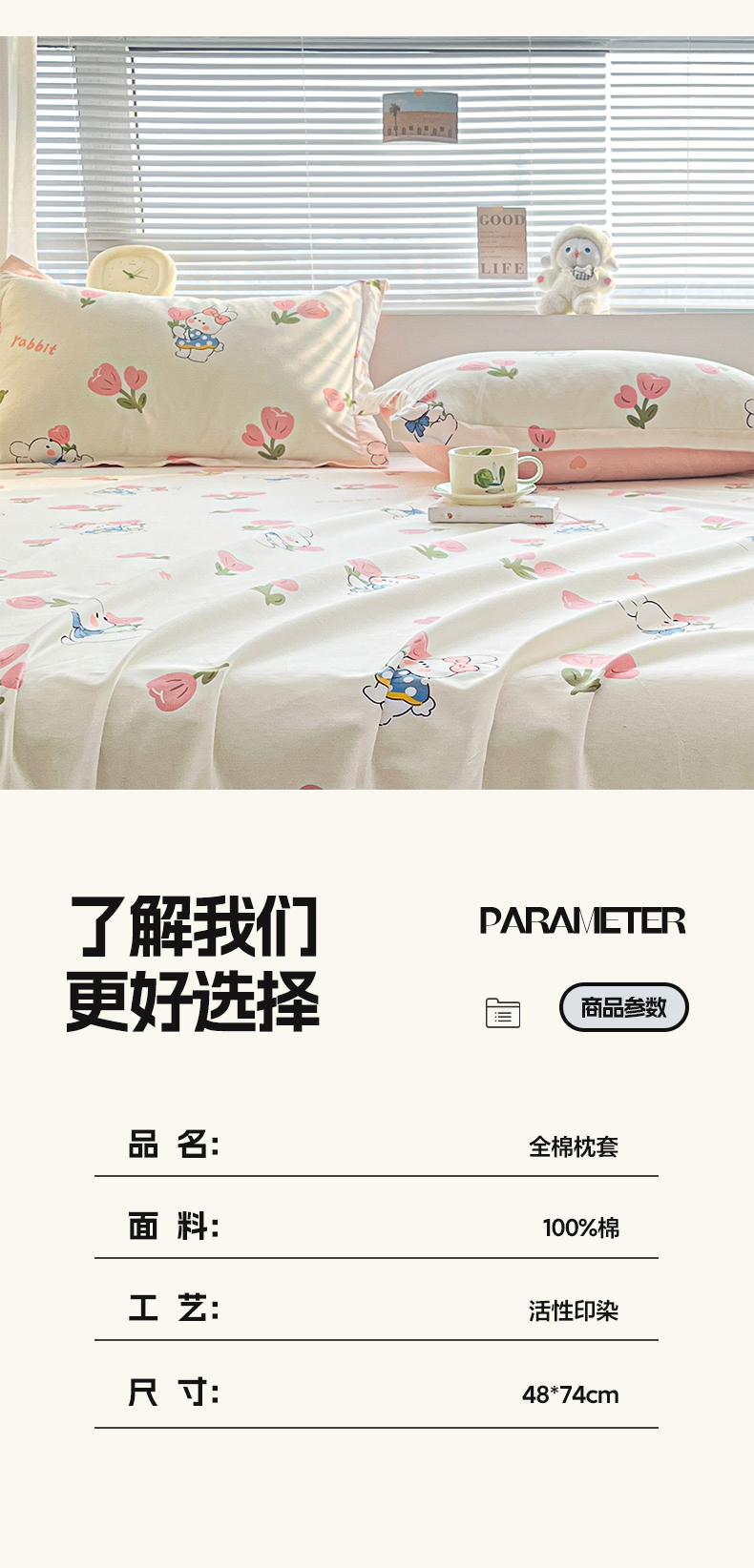 商品名称:涵宸家纺 2024新款全棉小清新印花单品套件--单枕套 枕套-花丛兔