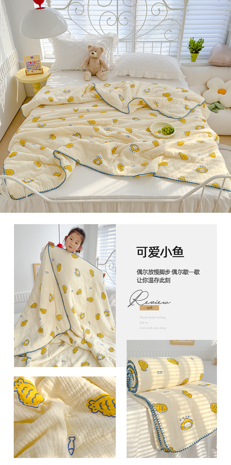 商品名称:芯恋 2025新款母婴级全棉皱皱纱儿童被双层纱夏被 可爱小鱼