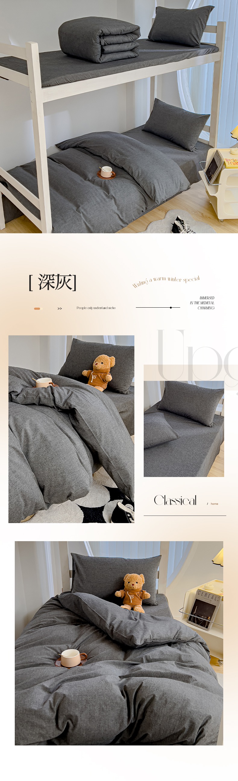 商品名称:久典家居 2024新款A类全棉学生款三件套 深灰
