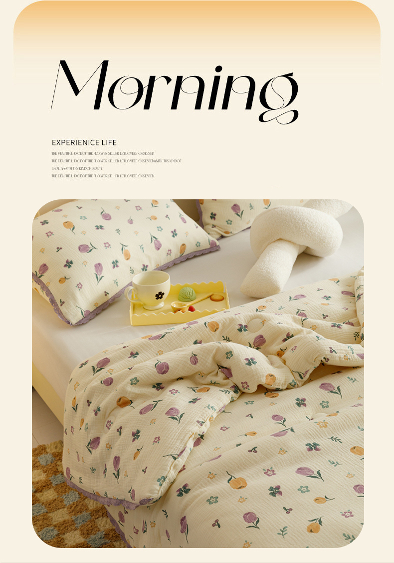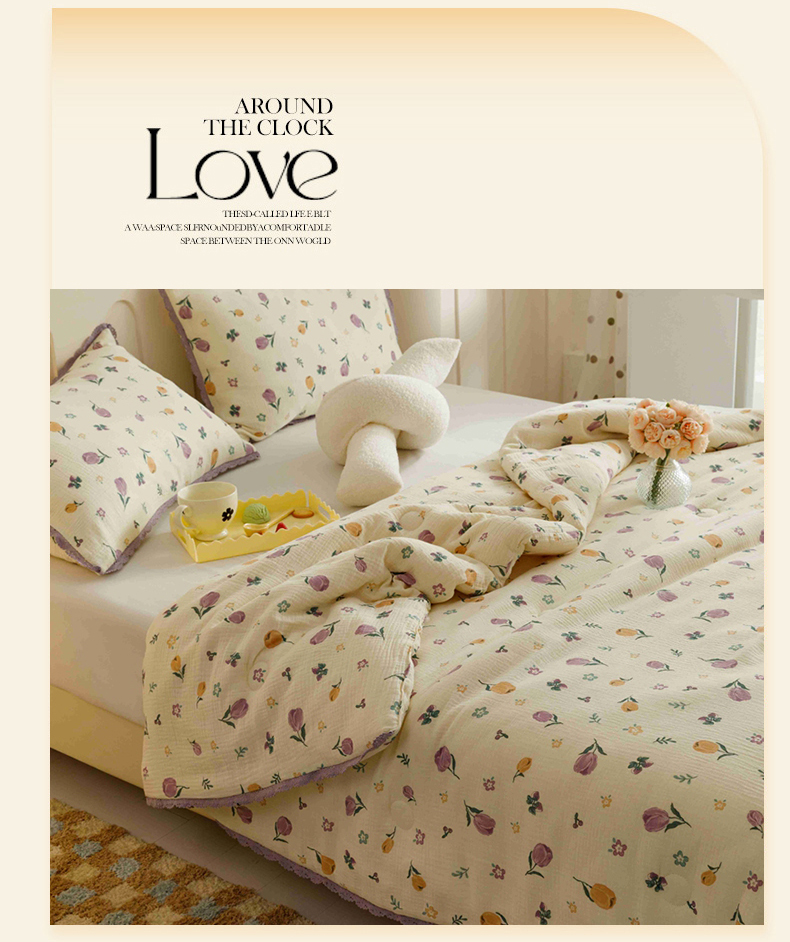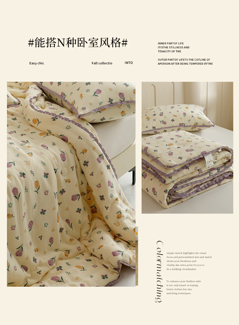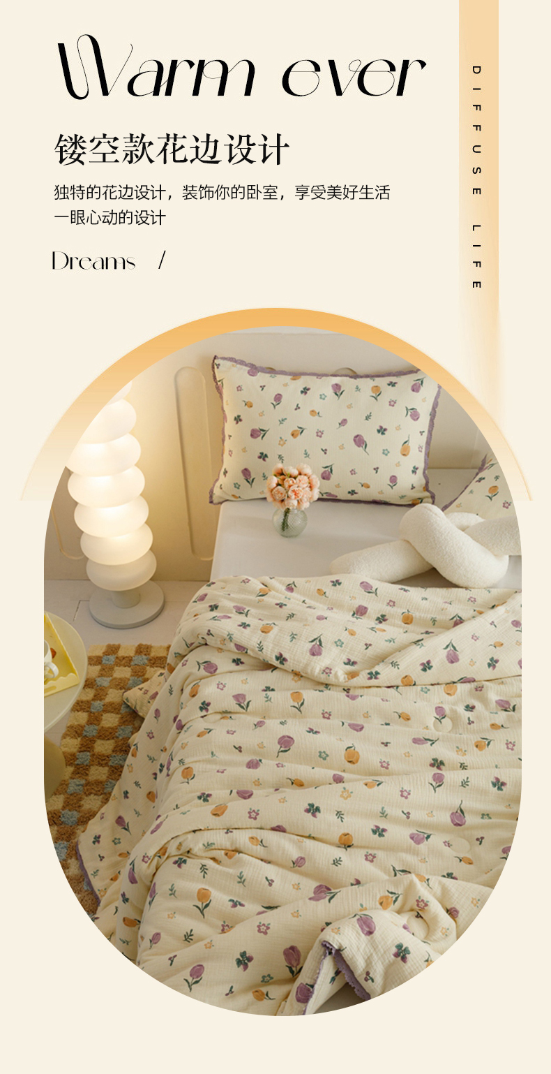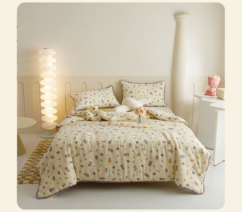 优被业 2025新款全棉双层纱皱皱纱夏被 花馨
