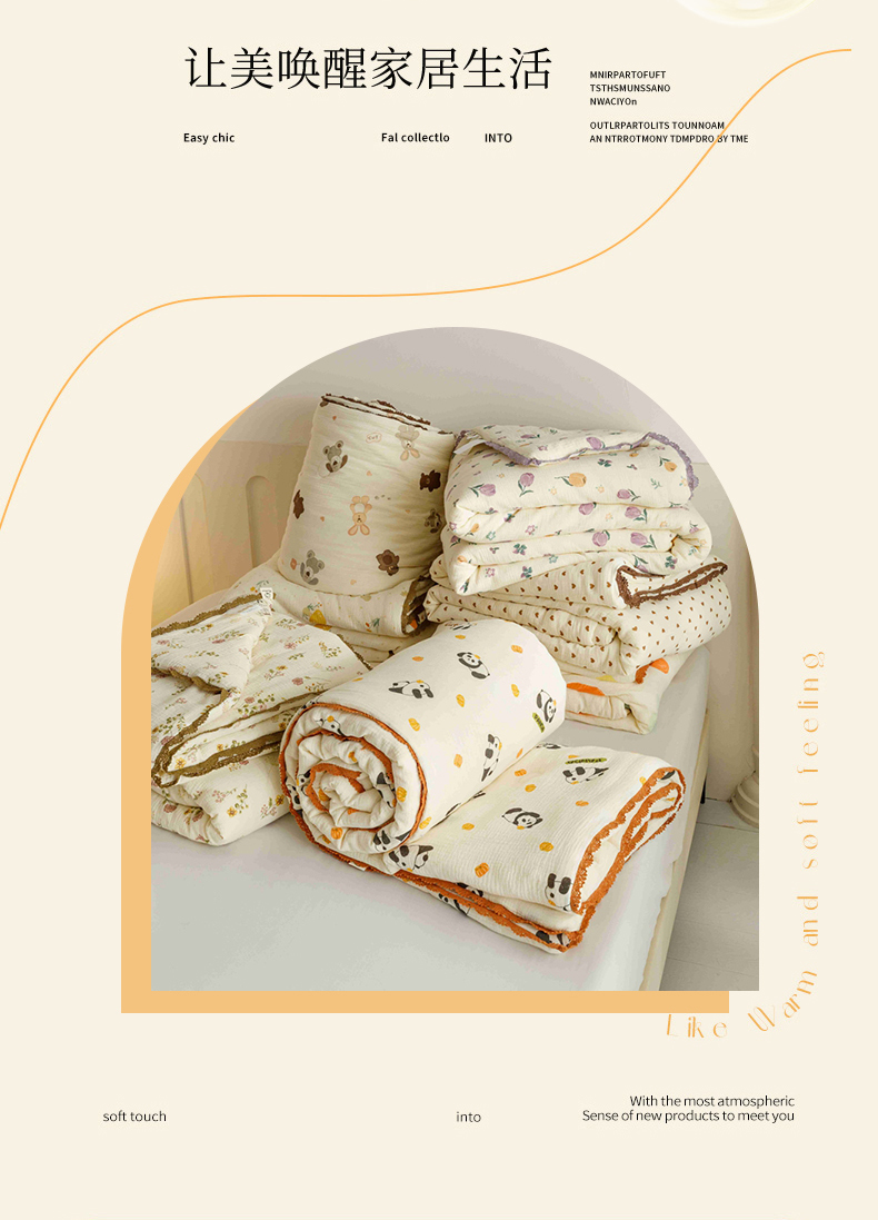 (总)优被业 2025新款全棉双层纱皱皱纱夏被,南瓜熊猫,宠物乐园,小爱心,爱心熊,花语,花馨,蘑菇小兔