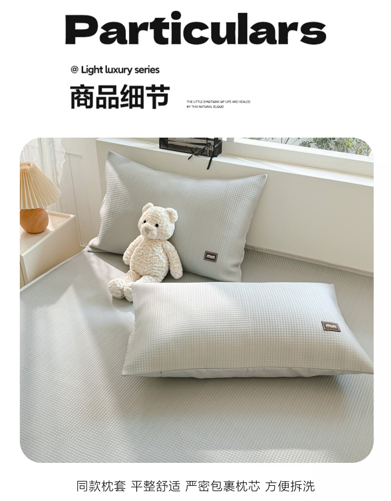 (总)慕澄家纺 2022新款华夫格简约款泡泡四件套,湖水绿,魅惑紫,奶白色,奶黄色,浅豆沙,情调灰,天空蓝,樱花粉
