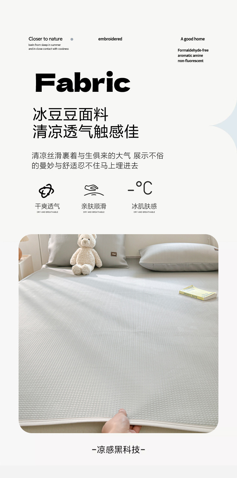 慕澄家纺 2024新款高克重冰豆豆复合纯色贴标凉席 冰激凌-灰