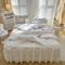 (总)慕澄家纺 2022新款华夫格雪纺花边四件套,湖水绿,魅惑紫,奶白色,奶黄色,浅豆沙,情调灰,天空蓝,樱花粉