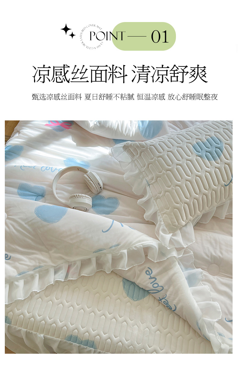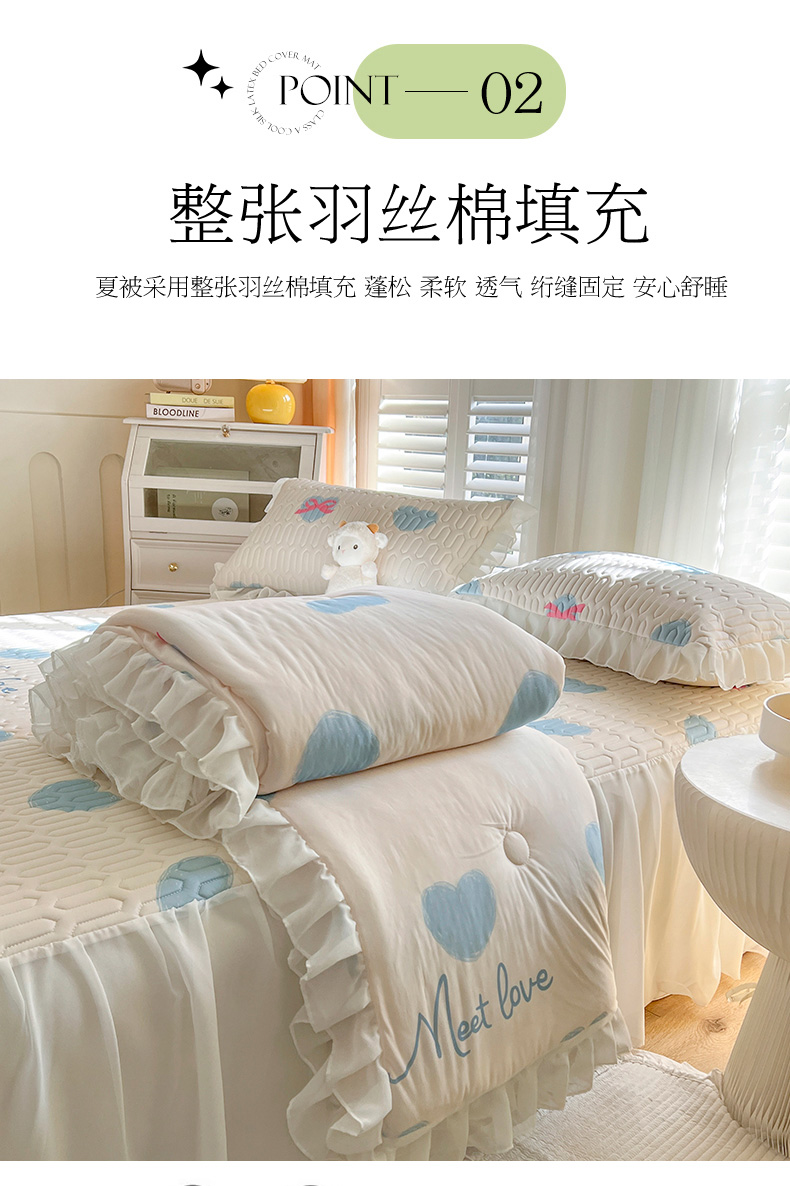 慕澄家纺 2024新款时尚印花泡泡棉花边夏被夏凉被空调被 夏被-心语,夏被-心语