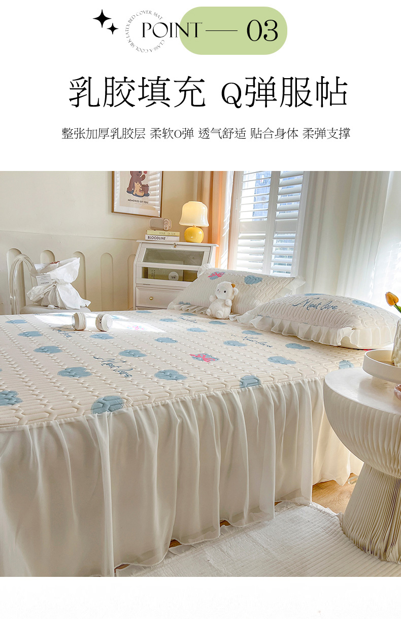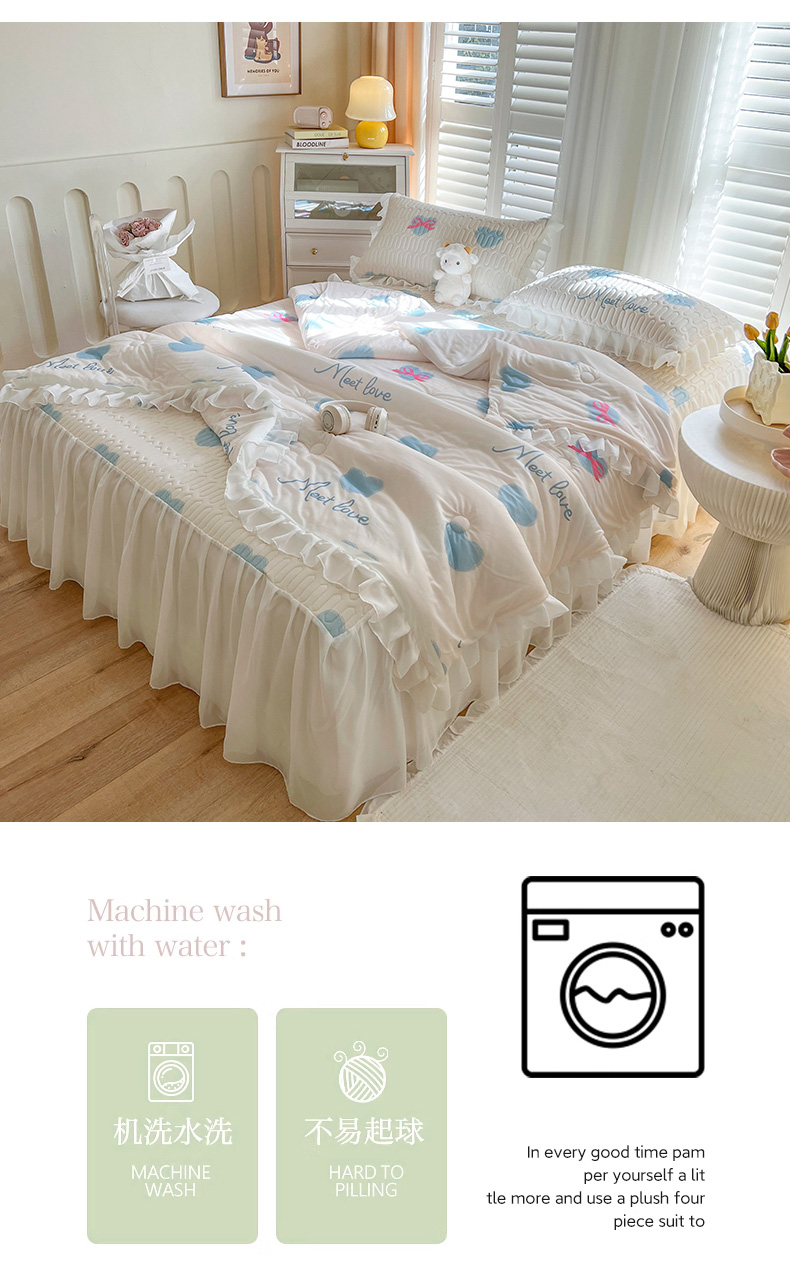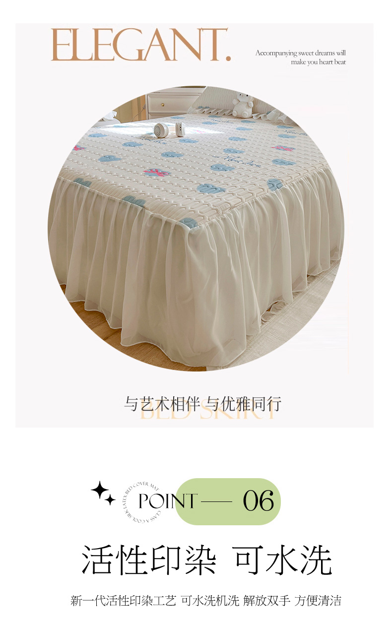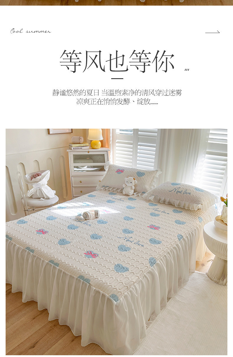 商品名称:慕澄家纺 2024新款小版印花床裙款乳胶凉席凉感丝夏被四件套 床裙款-心情