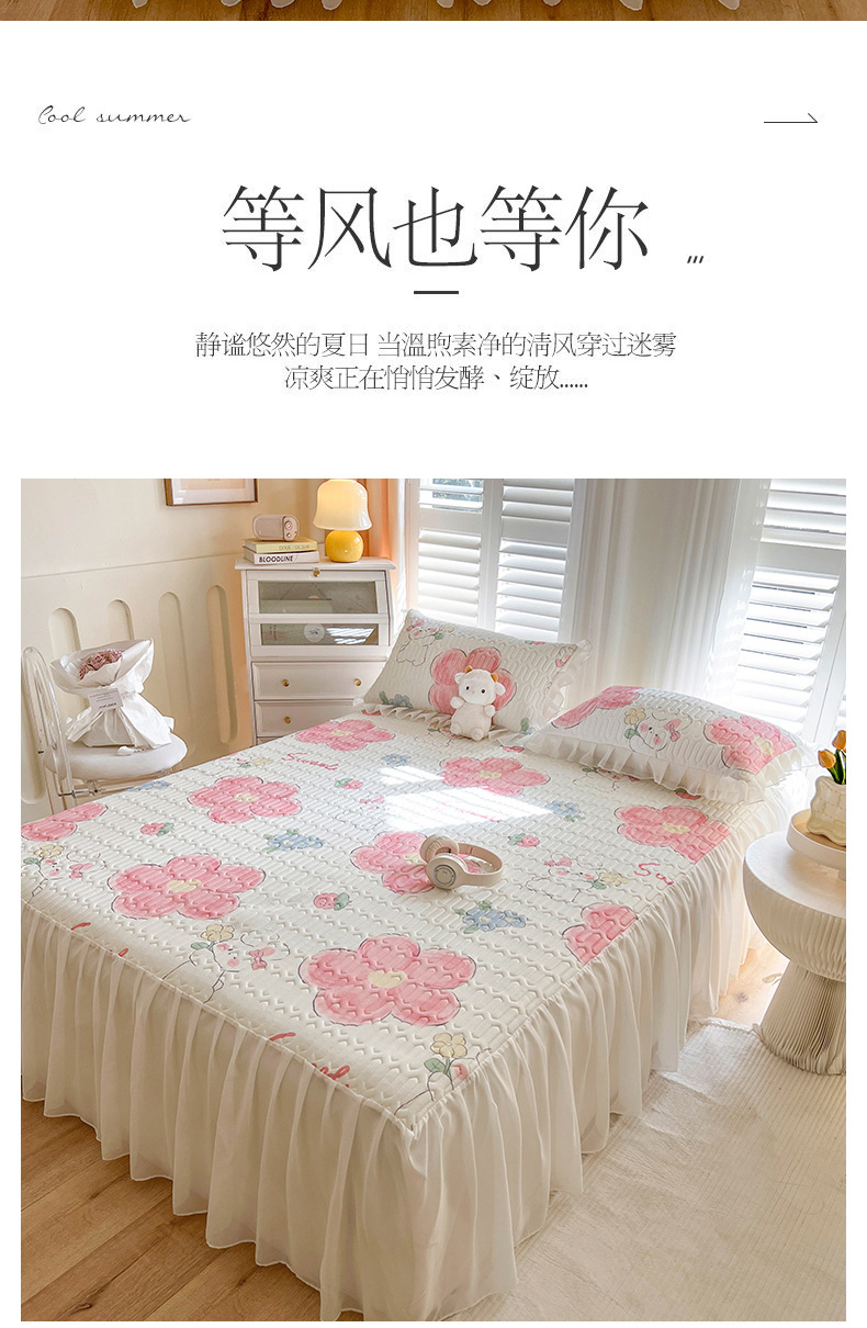 商品名称:慕澄家纺 2024新款小版印花床裙款乳胶凉席三件套 床裙款-心花怒放