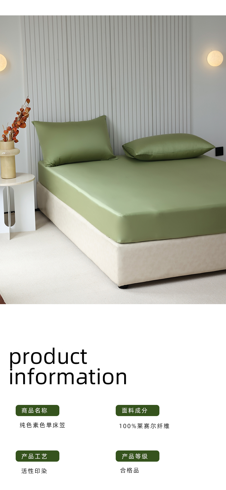 商品名称:Mr.pig猪先生水洗棉 2024新款60天丝莱赛尔纤维四件套系列-单床笠 青频绿