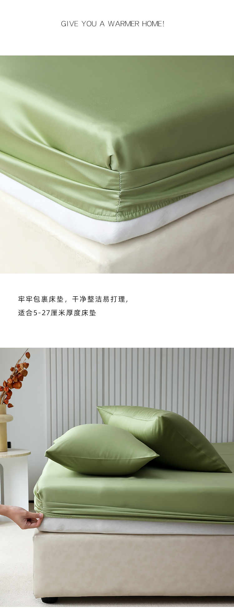 Mr.pig猪先生水洗棉 2024新款60天丝莱赛尔纤维四件套系列-单床笠 青频绿