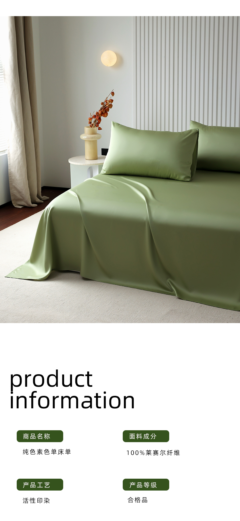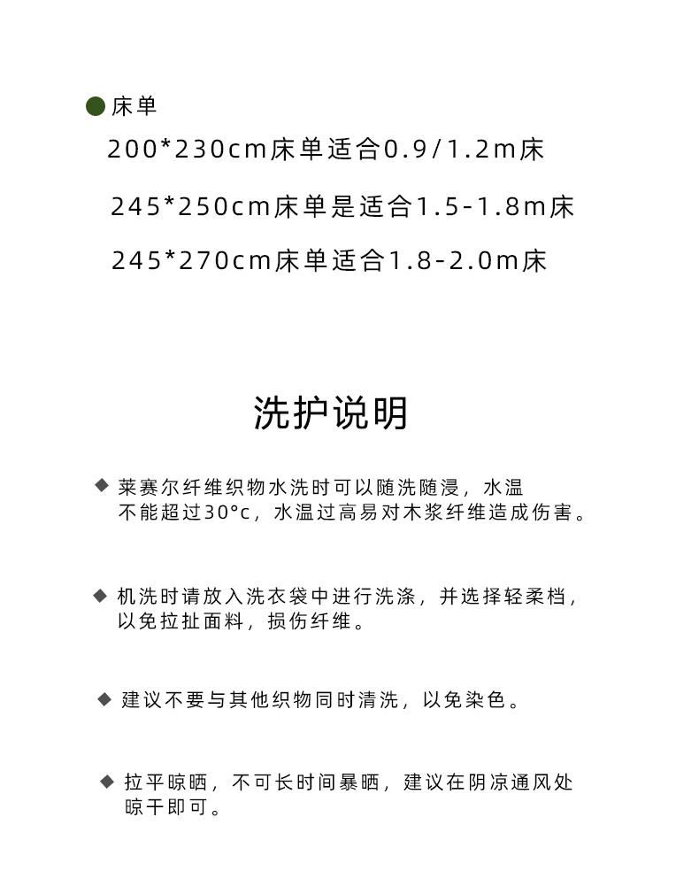 商品名称:Mr.pig猪先生水洗棉 2024新款60天丝莱赛尔纤维四件套系列-单床单 青频绿