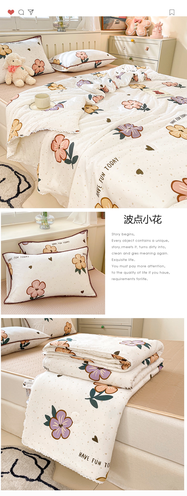 当前位置: 91家纺网 > 商品网购 > 床品套件 > 四件套 > 夏被四件套 > 花漾 2024新款A类花边小清新卡通针织凉感丝夏被软席四件套凉席夏被四件套 波点小花