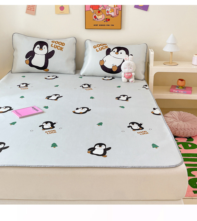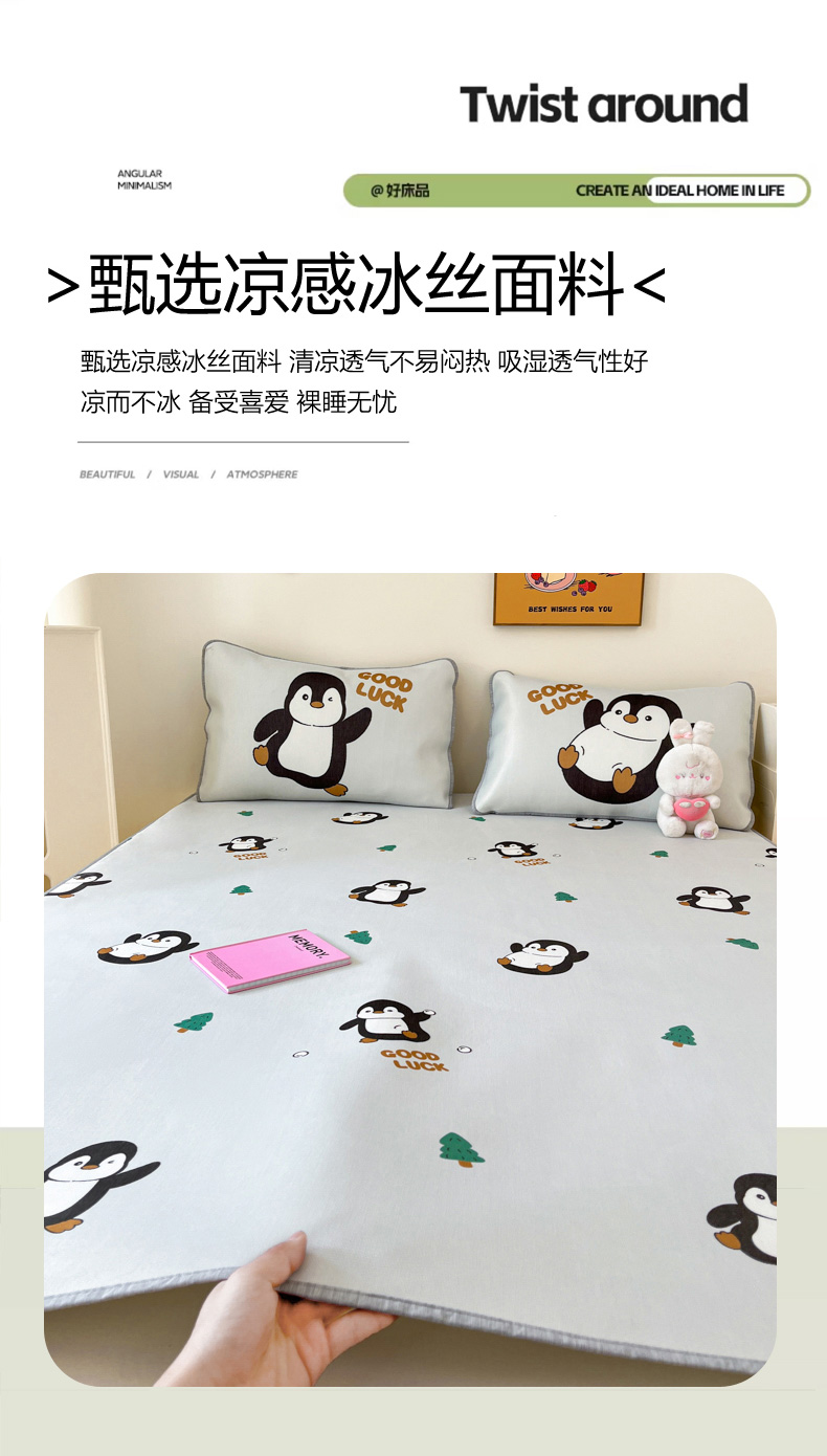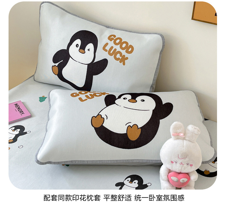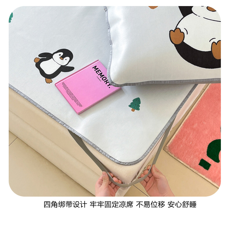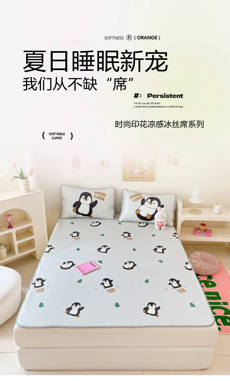 商品名称:寐居家纺 2024新款A类时尚印花凉感冰丝凉席 跳跳企鹅