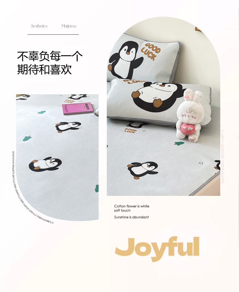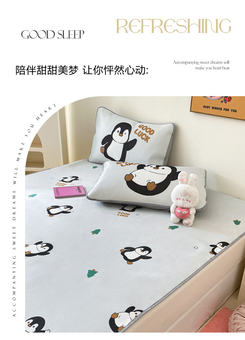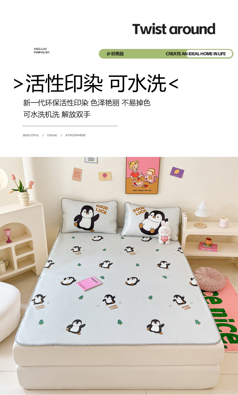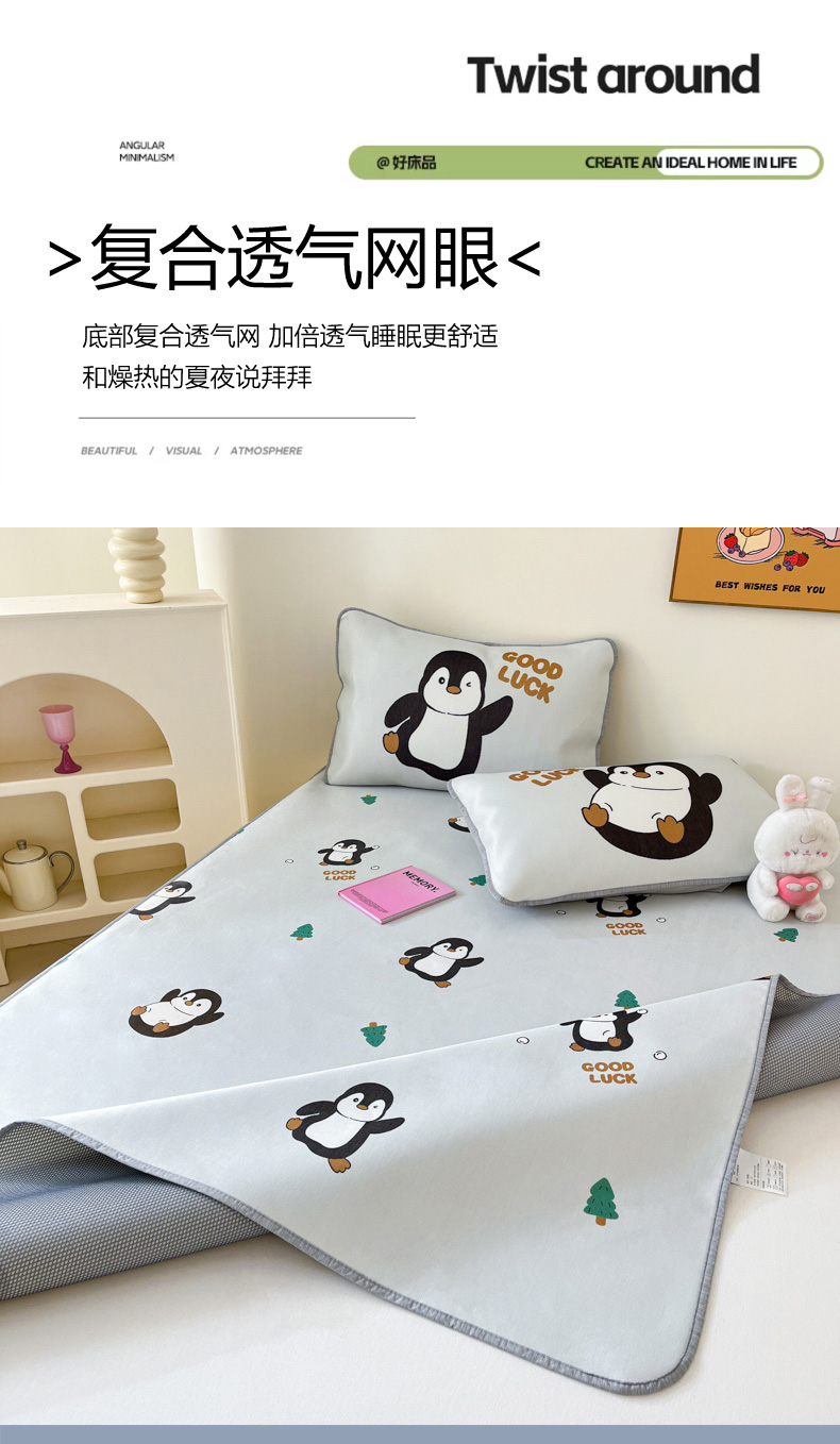 商品名称:寐居家纺 2024新款A类时尚印花凉感冰丝凉席 跳跳企鹅