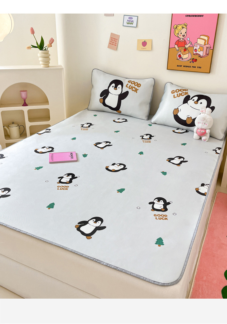 寐居家纺 2024新款A类时尚印花凉感冰丝凉席 跳跳企鹅