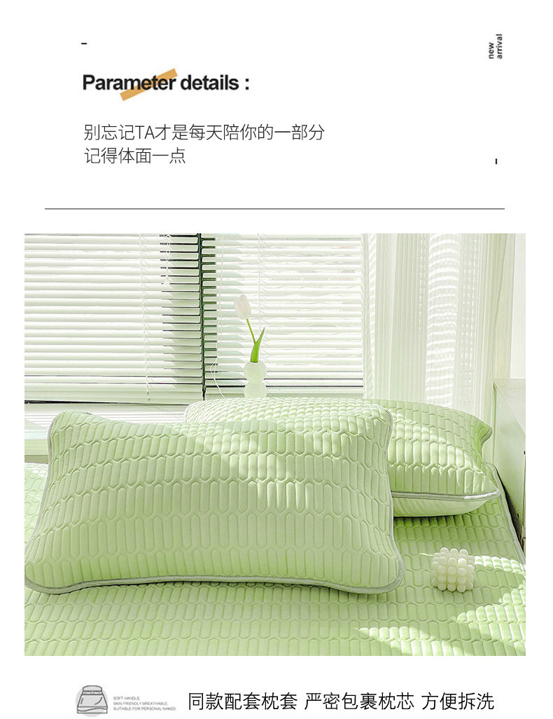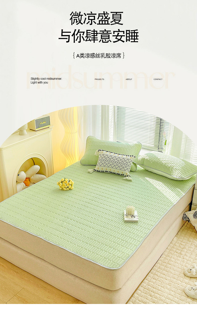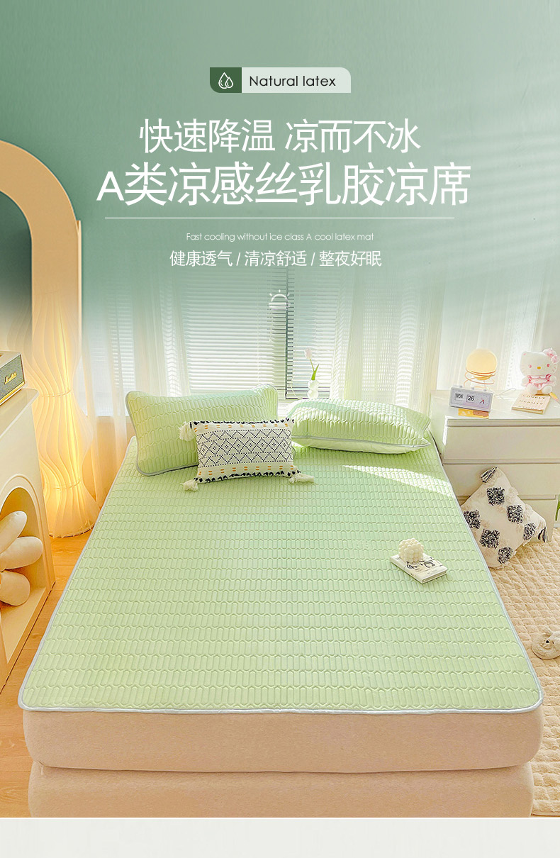 商品名称:寐居家纺 2024新款A类凉感丝纯色天然乳胶凉席 湖绿色