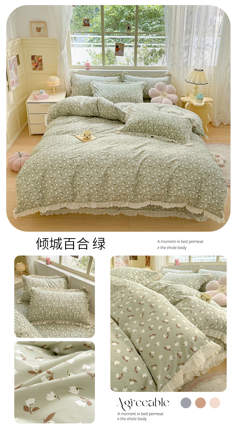 商品名称:美伦美焕 2024新款印花床盖四件套倾城百合 绿