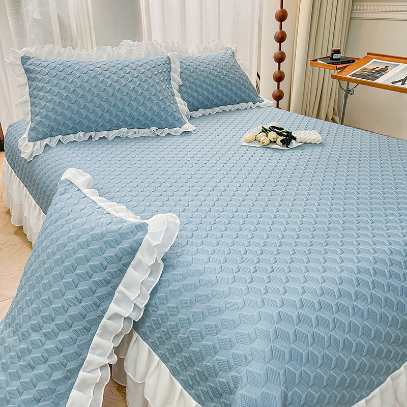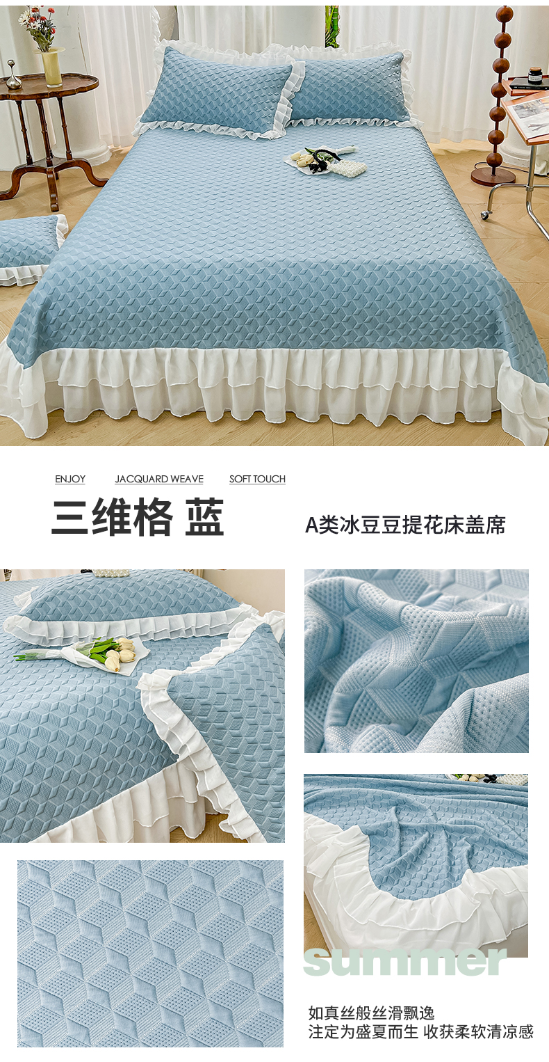 宜凡2024新款A类冰豆豆提花床盖凉席 三维格 蓝