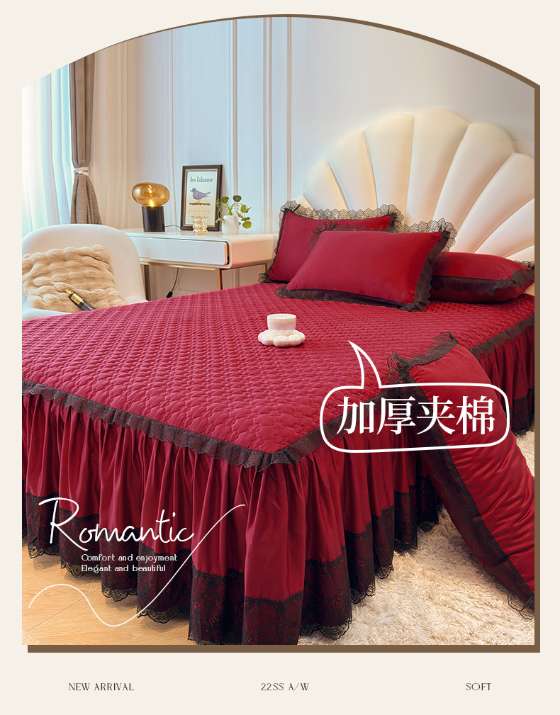 (总)恋尚 2025新款韩式蕾丝丝光棉夹棉床裙四件套,蜜芙-浅蓝,蜜芙-米黄,蜜芙-蜜桃粉,蜜芙-浅白,蜜芙-水绿,蜜芙-香芋紫