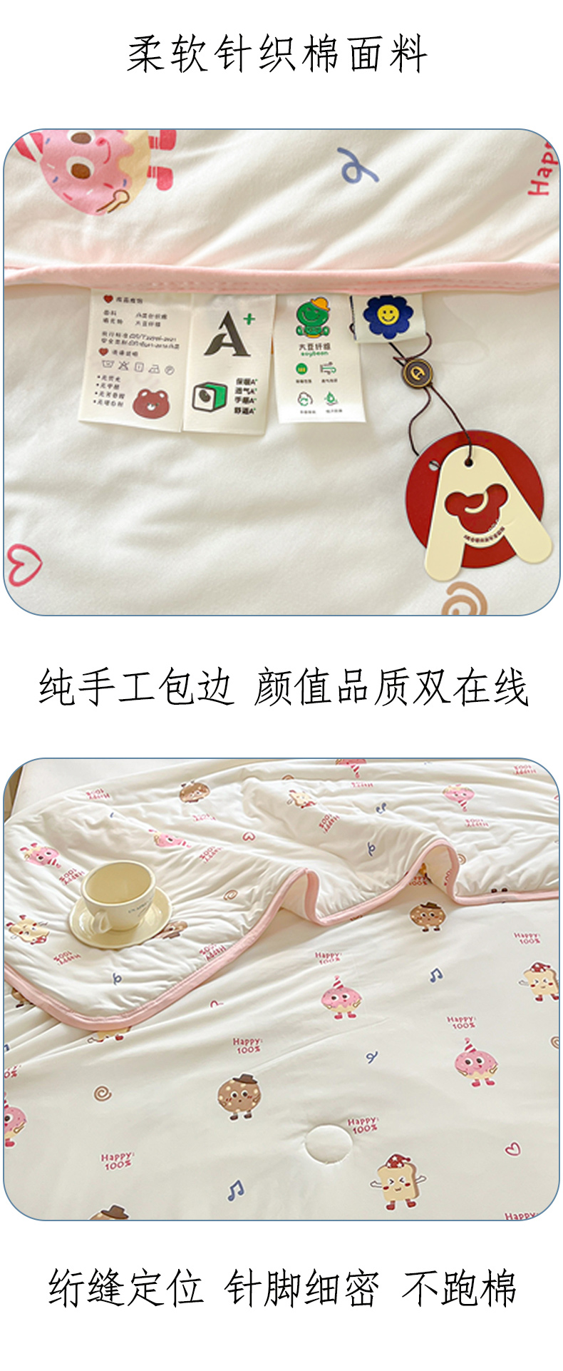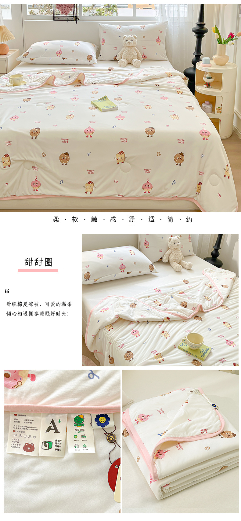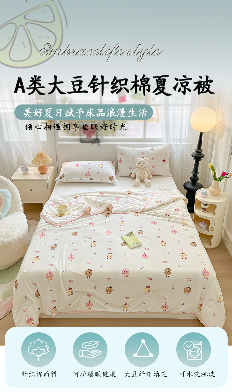 商品名称:葡萄家 2024新款A类母婴级大豆纤维牛奶丝针织棉夏凉被 甜甜圈
