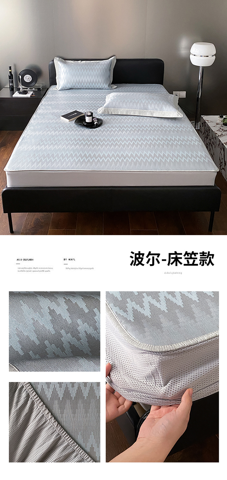 商品名称:三味舒屋 2025新款轻奢主义抗菌防螨凉感提花冰丝养生席床笠款 波尔