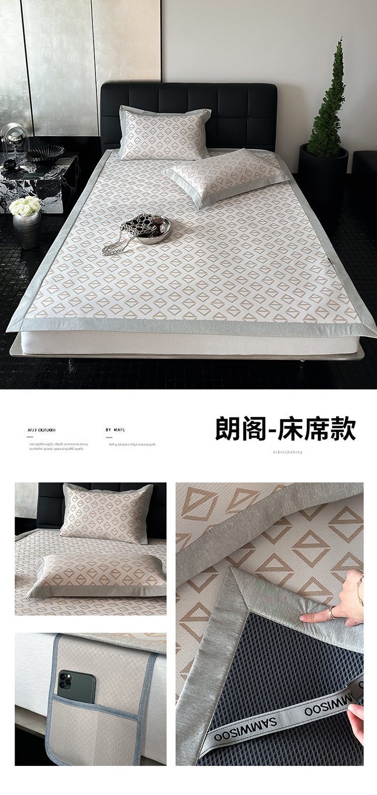 (总)三味舒屋 2025新款麦吉拉时尚印花冰藤凉席席子,麦吉拉 米 床席,麦吉拉 蓝 床席,麦吉拉蓝 床笠,麦吉拉米 床笠