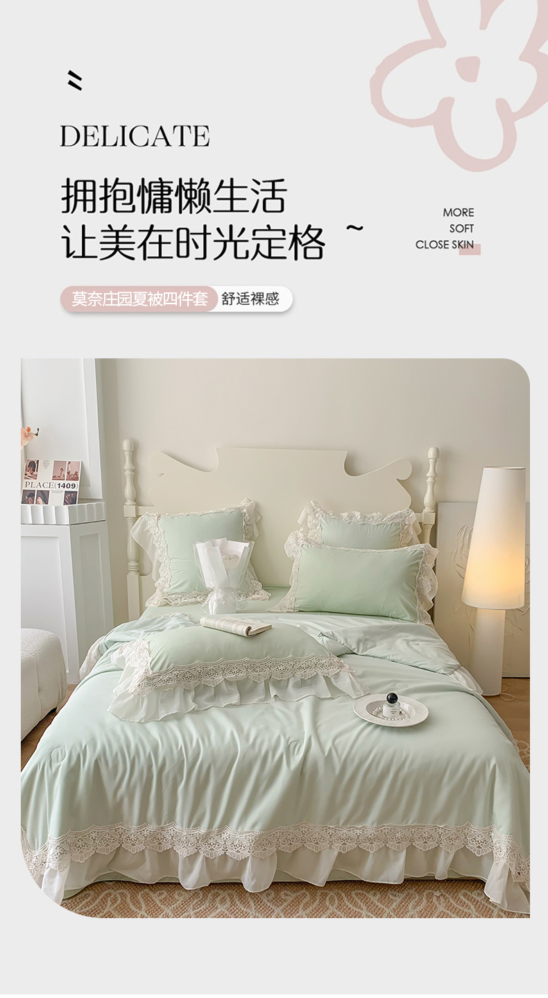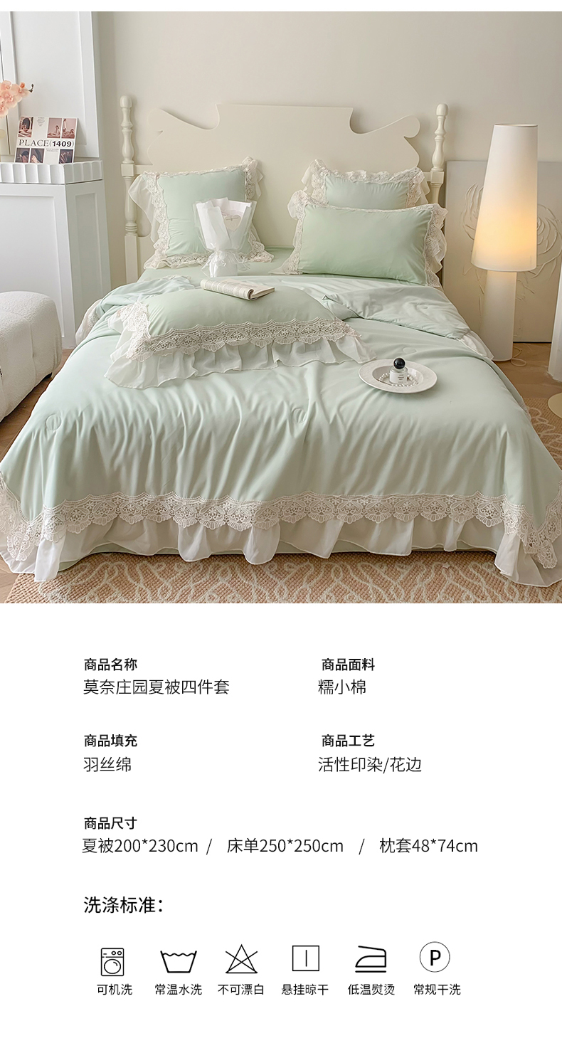商品名称:吾欢心 2025新款亲肤舒适夏被四件套-莫奈庄园 莫奈庄园清新绿 夏被四件套