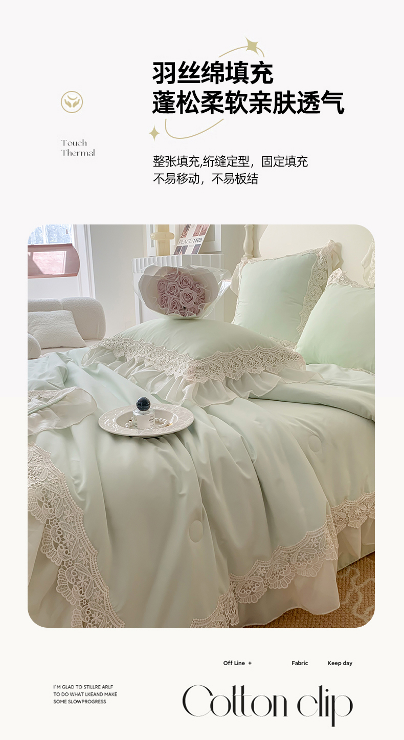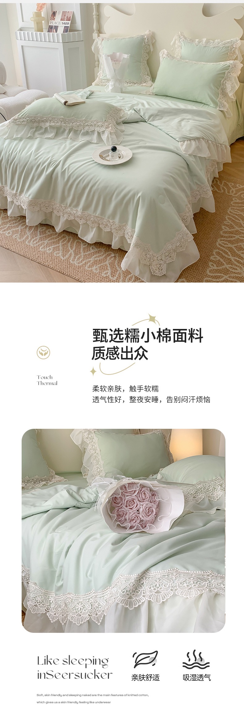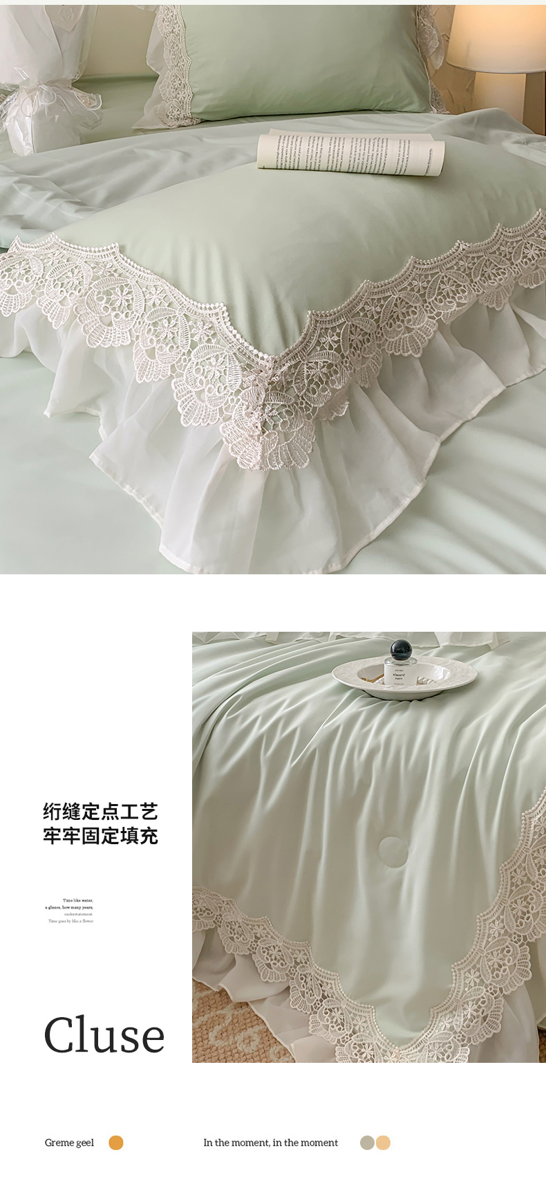 (总)吾欢心 2025新款公主风雪纺边四季通用夹棉床盖,床盖白,床盖粉,床盖黄,床盖咖,床盖绿,床盖抹茶绿,床盖紫