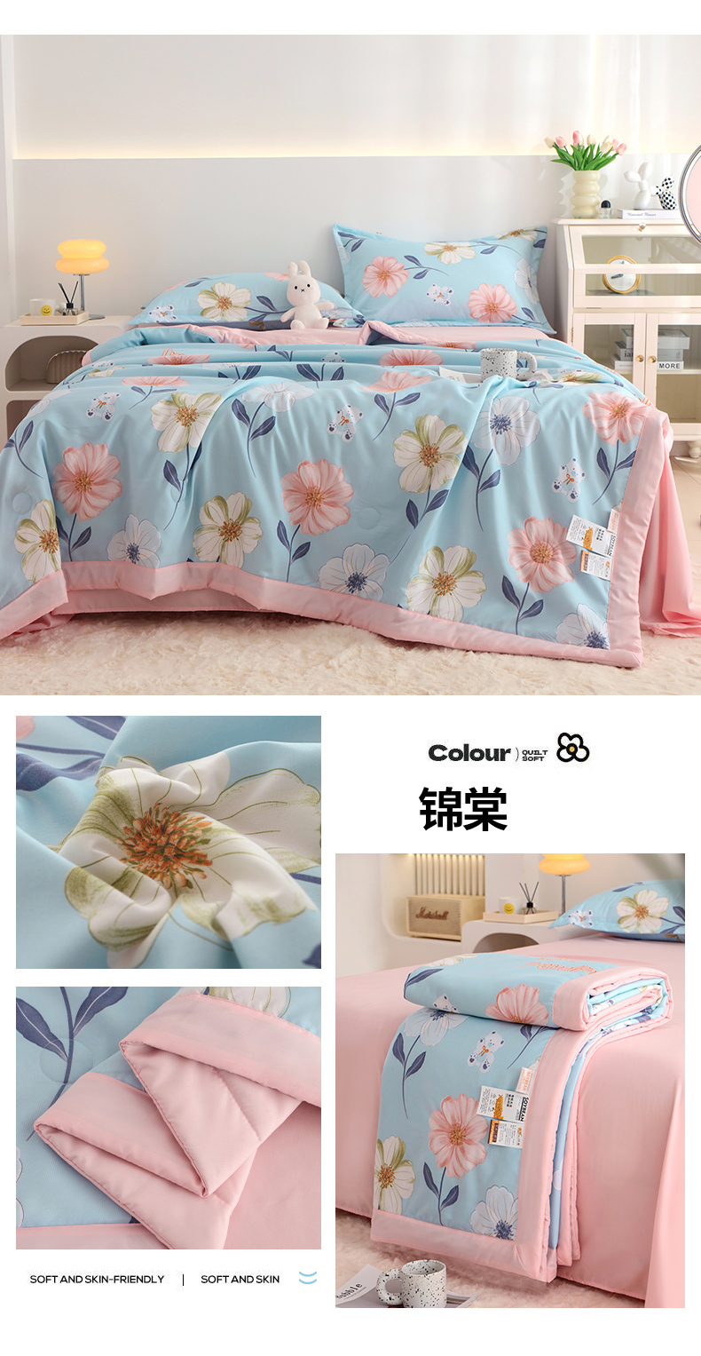 商品名称:优布加 2024新款水洗棉大豆被夏被大豆纤维空调被夏凉被 锦棠
