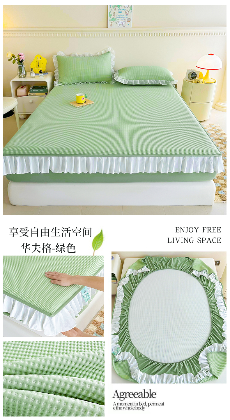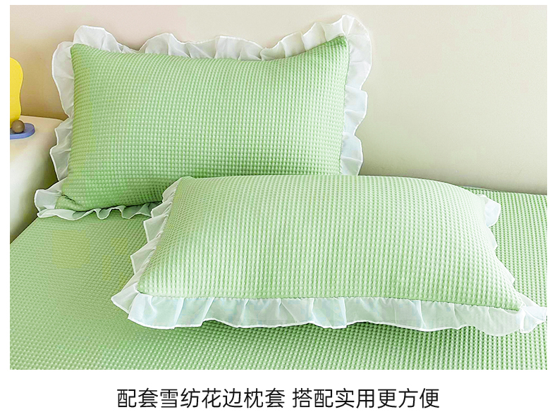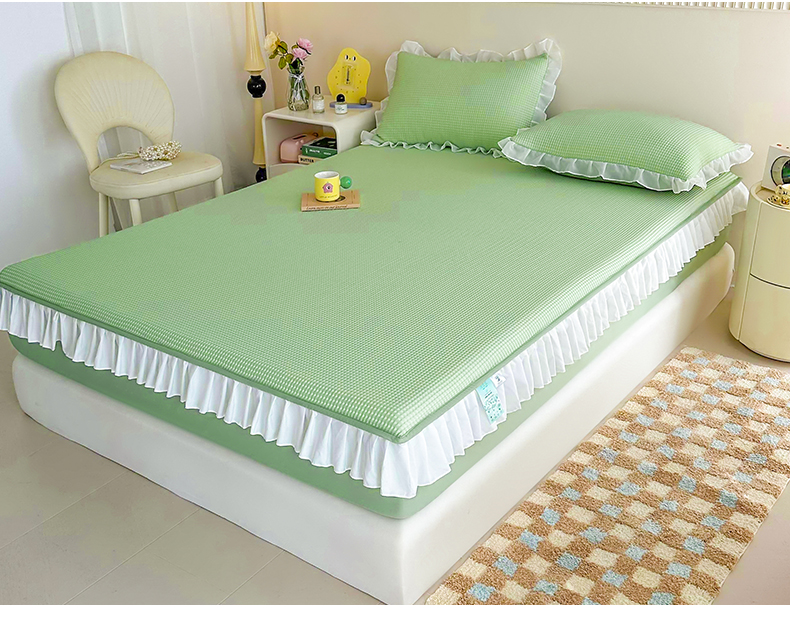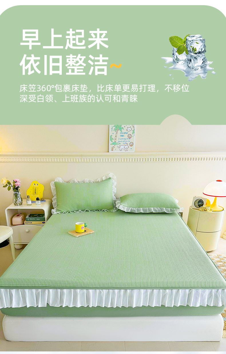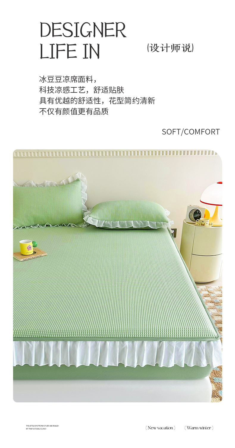 屹成家纺 2024新款PE高分子凉豆豆冰丝凉席床笠款 华夫格-绿色