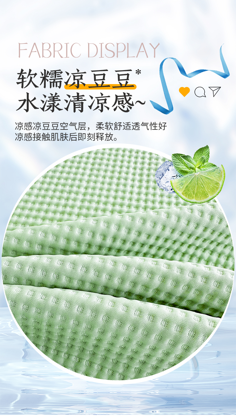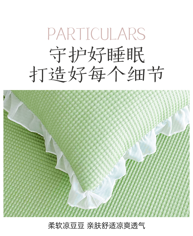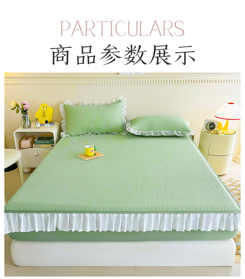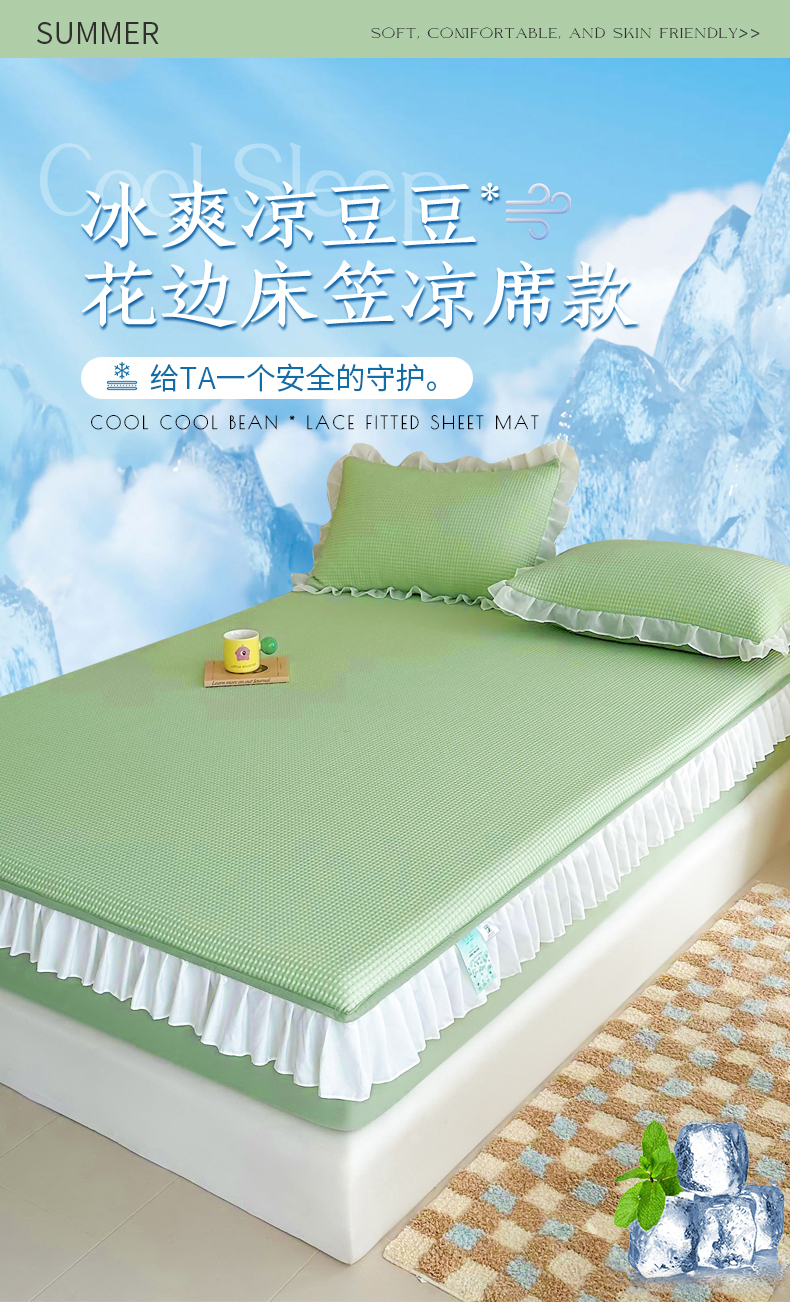 商品名称:屹成家纺 2024新款PE高分子凉豆豆冰丝凉席床笠款 华夫格-绿色