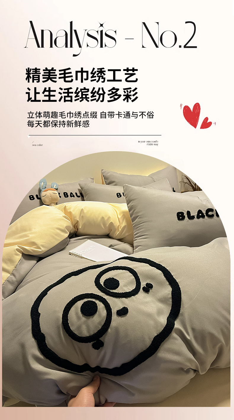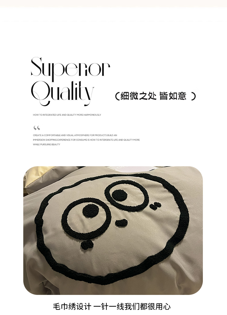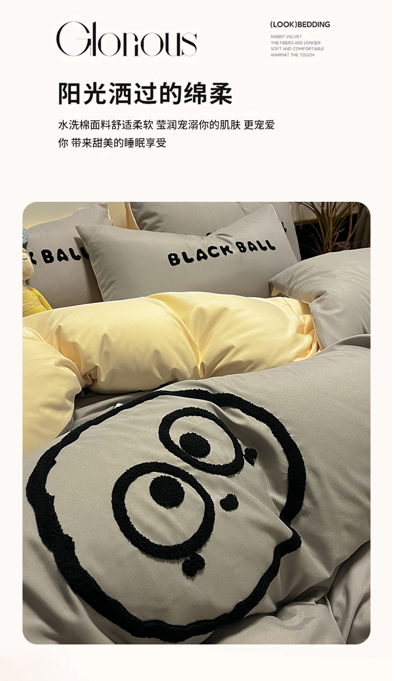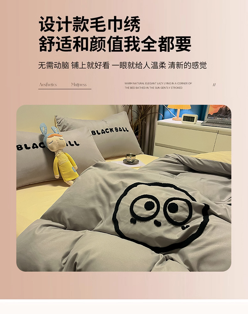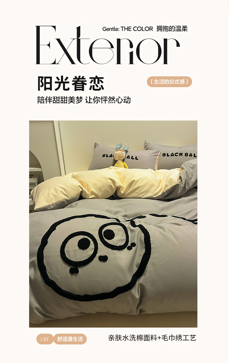 当前位置: 91家纺网 > 商品网购 > 床品套件 > 四件套 > 水洗棉四件套 > 眠帛家居 2024新款水洗棉毛巾绣四件套-煤球系列 浅灰-奶黄