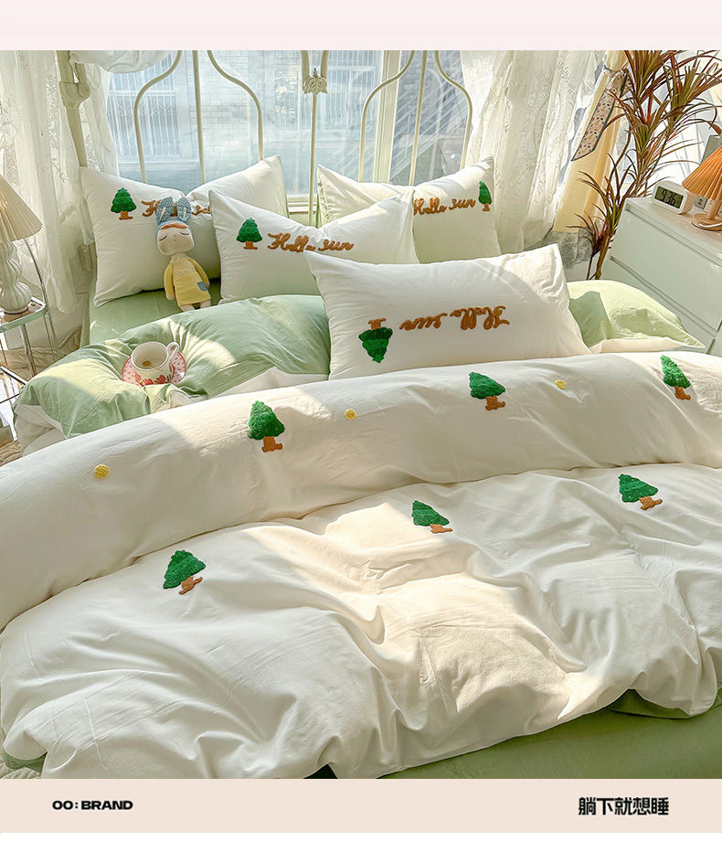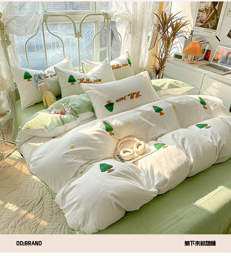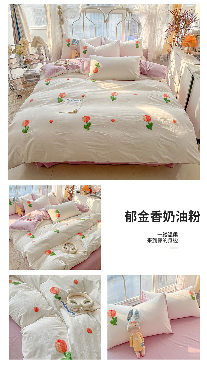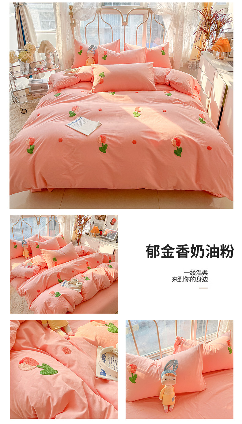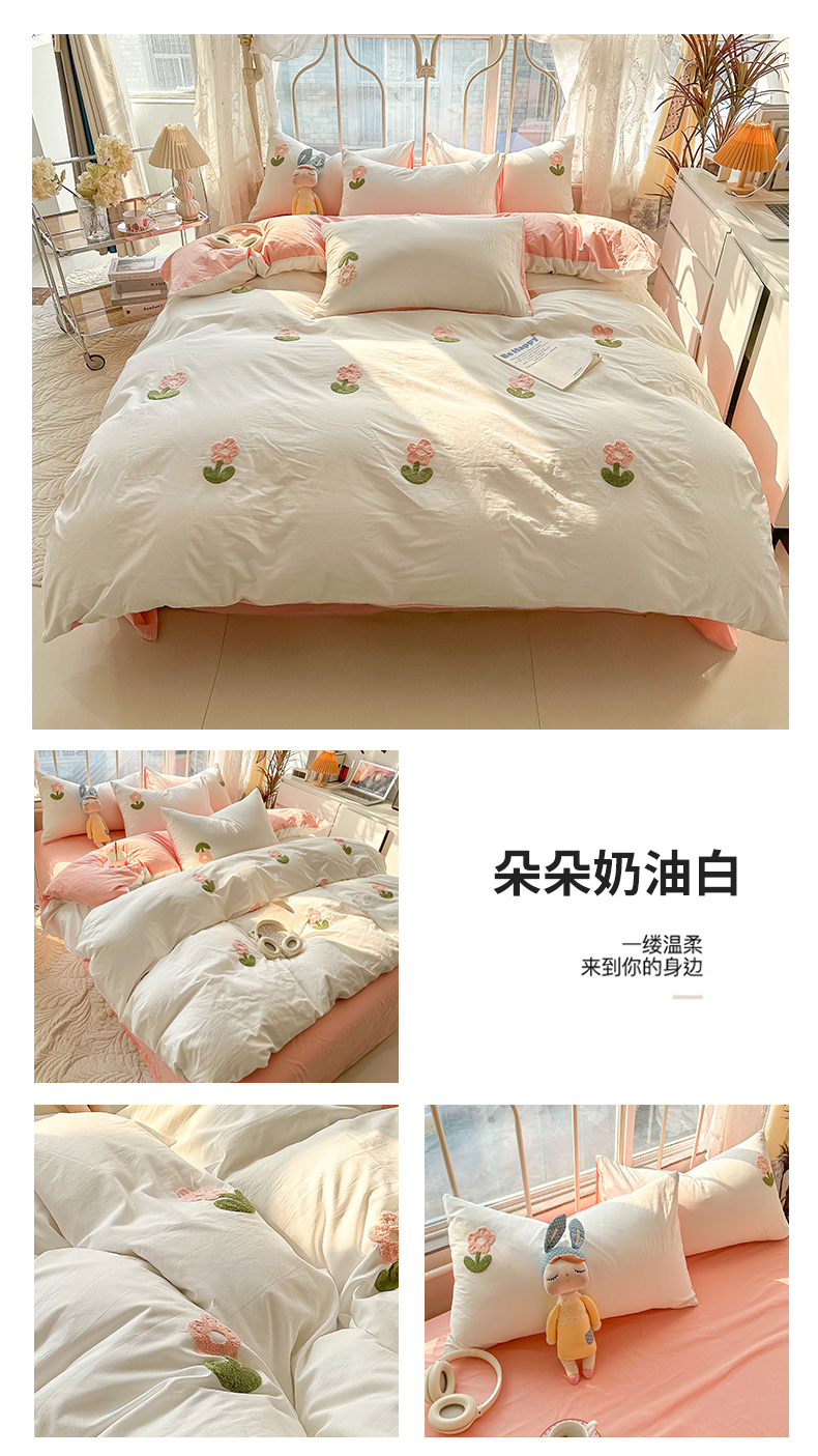 (总)眠帛家居 2024新款水洗棉奶油小清新毛巾绣四件套早春系列