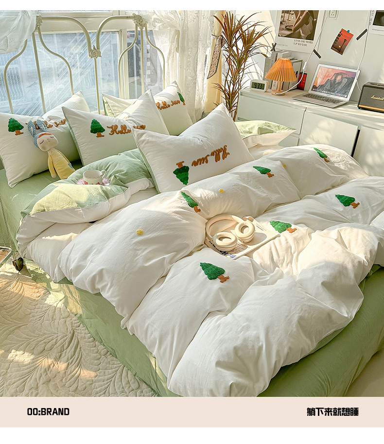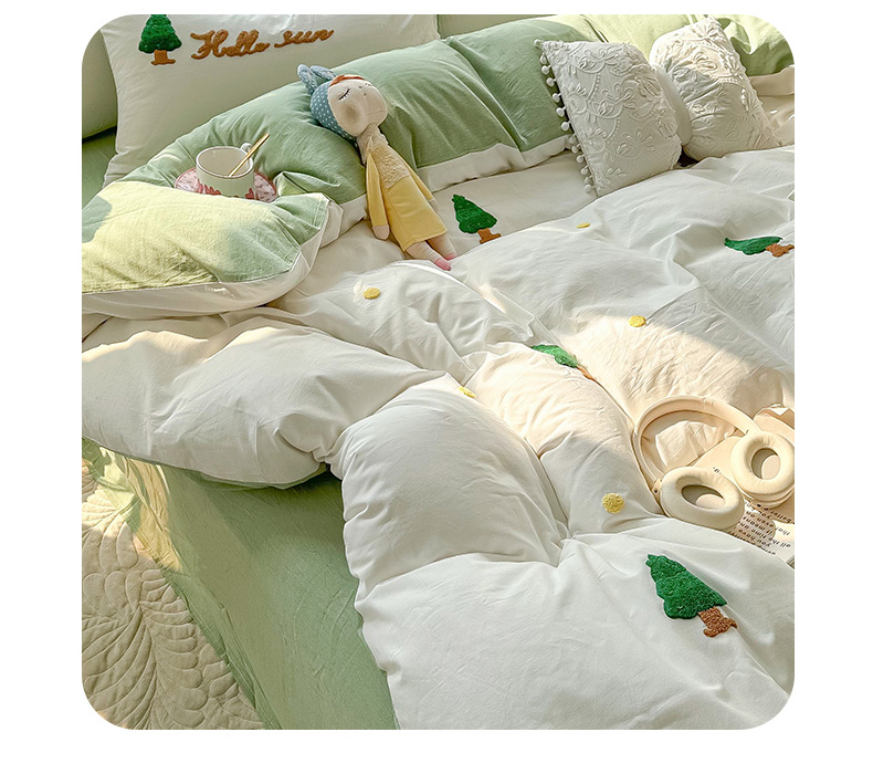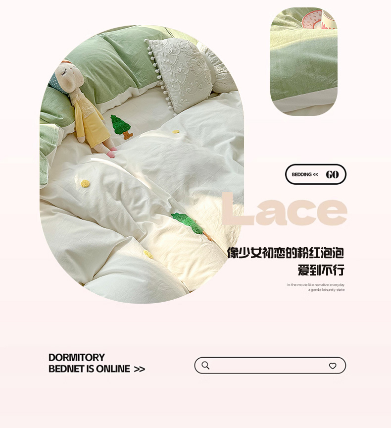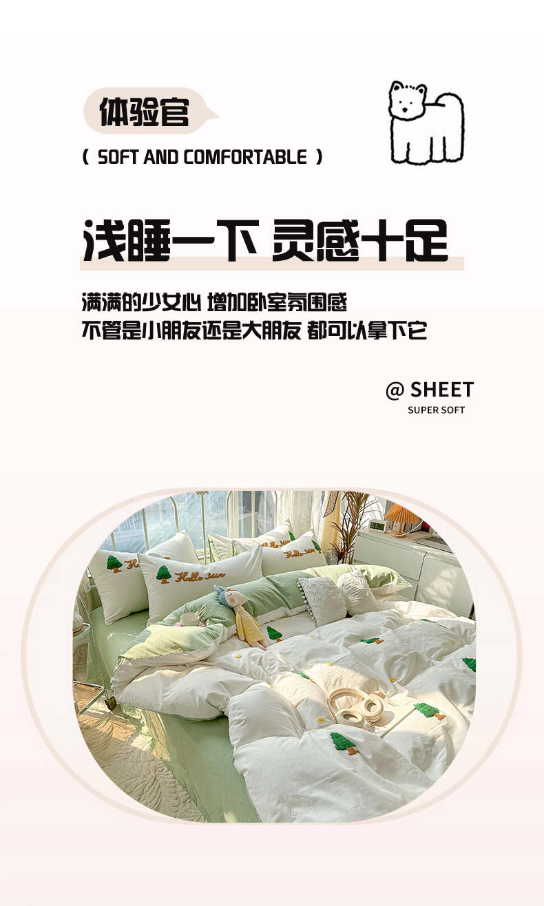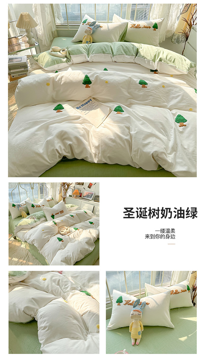 (总)眠帛家居 2024新款水洗棉奶油小清新毛巾绣四件套早春系列