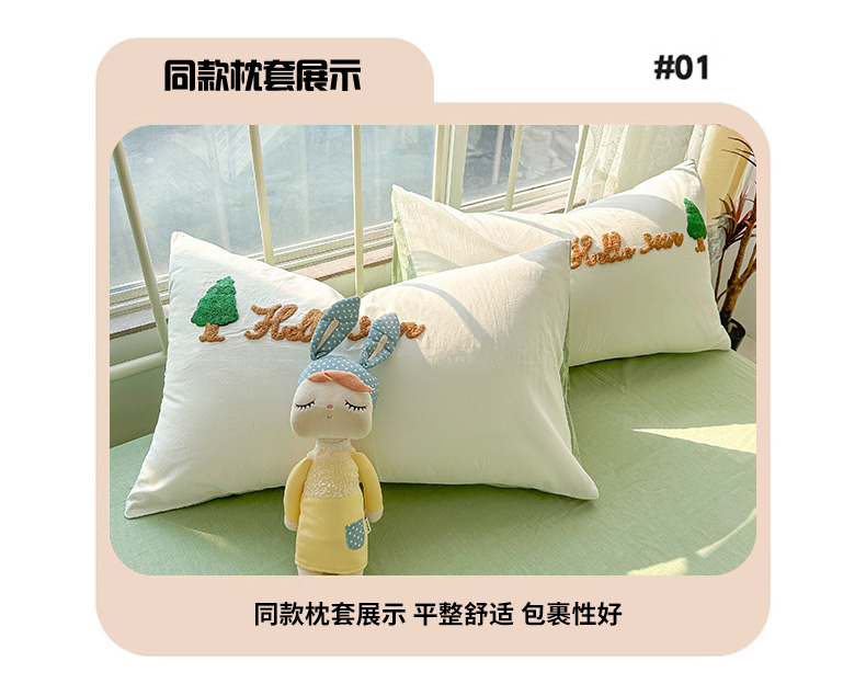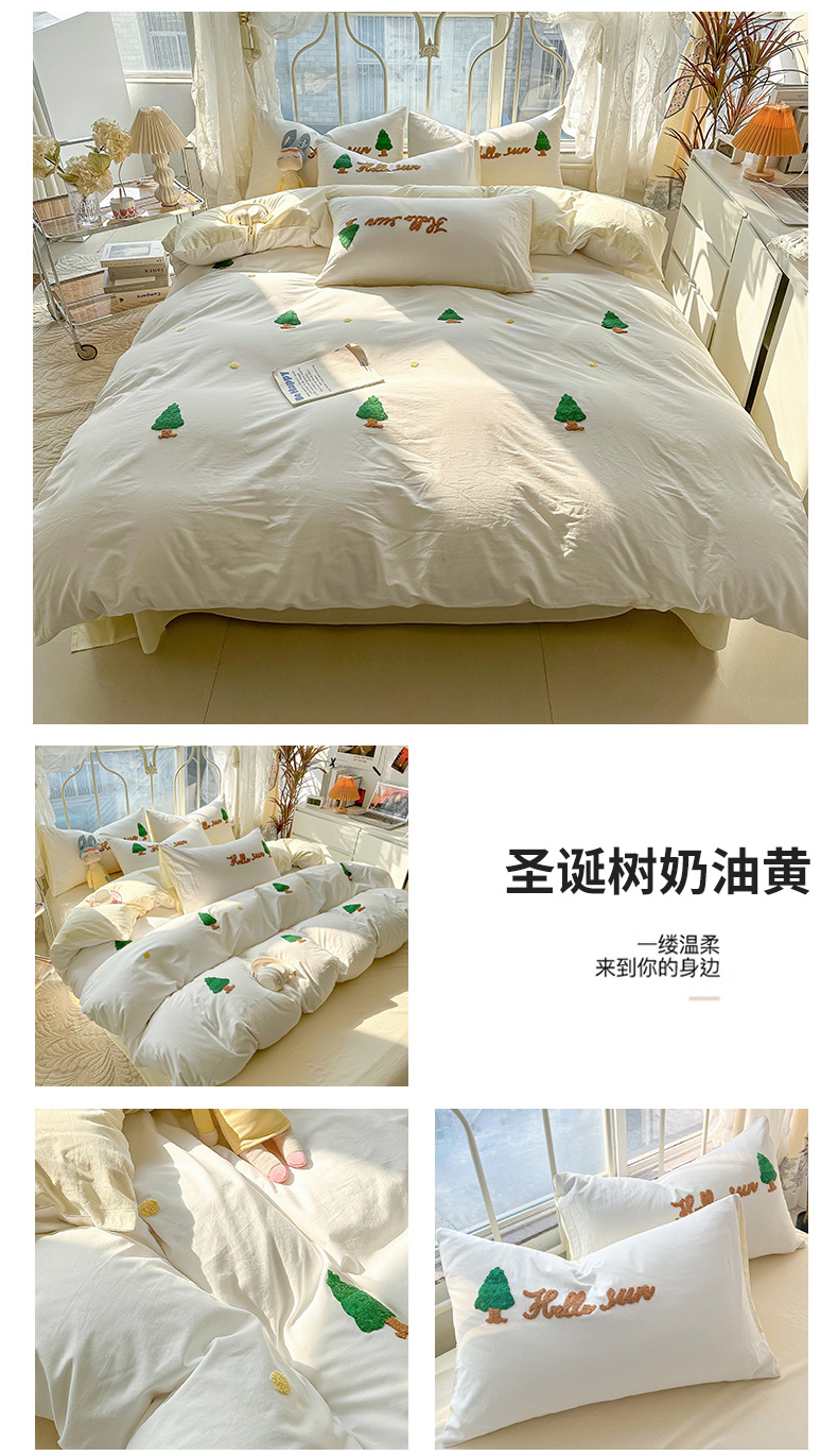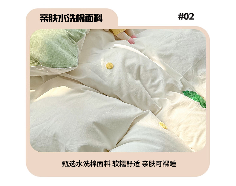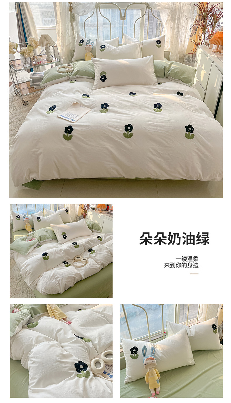 商品名称:(总)眠帛家居 2024新款水洗棉奶油小清新毛巾绣四件套早春系列