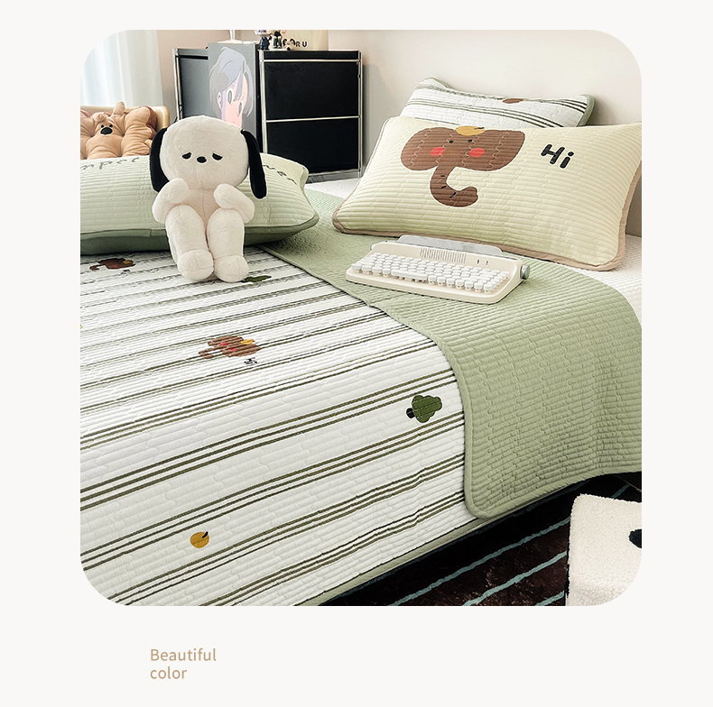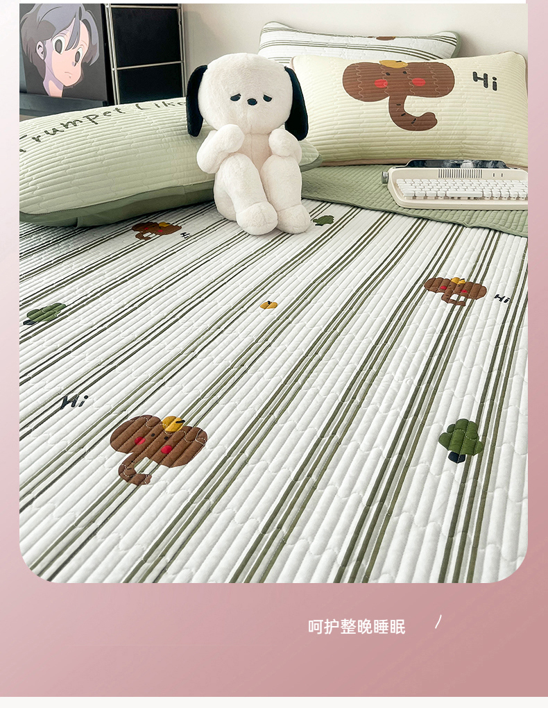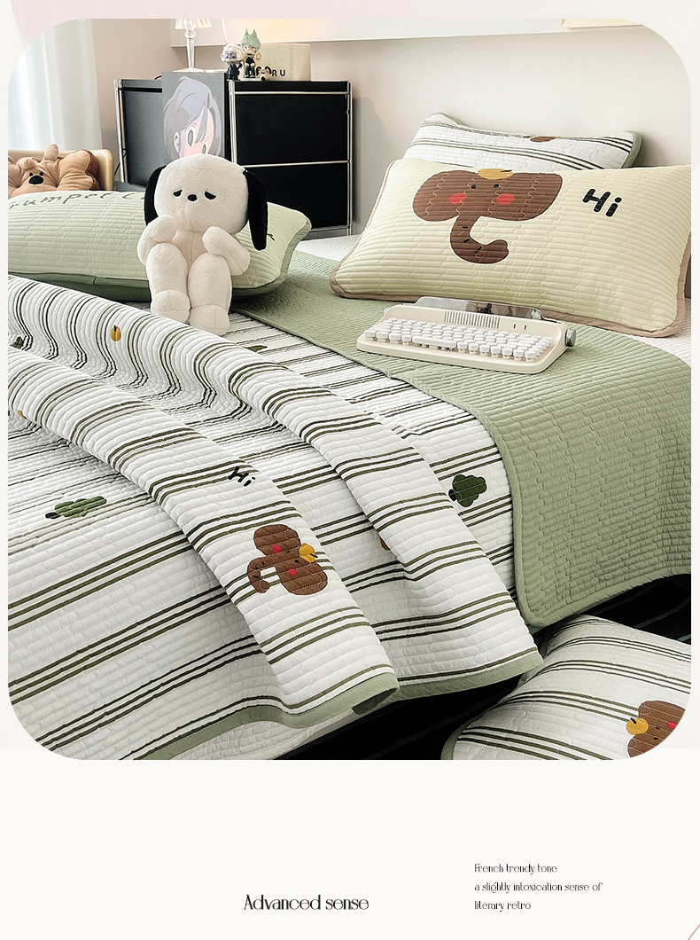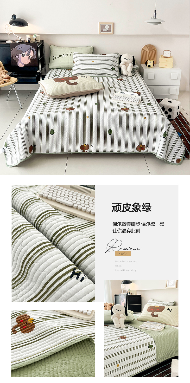 茉夕家纺 2024新款数码双面纯棉水洗床盖 顽皮象绿