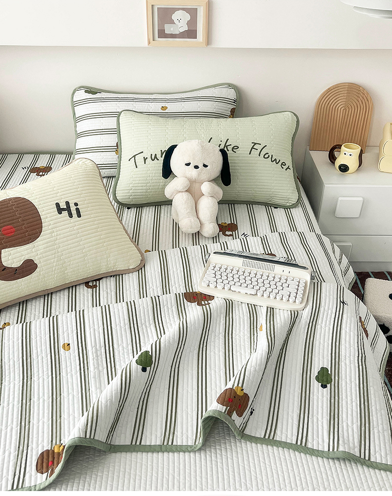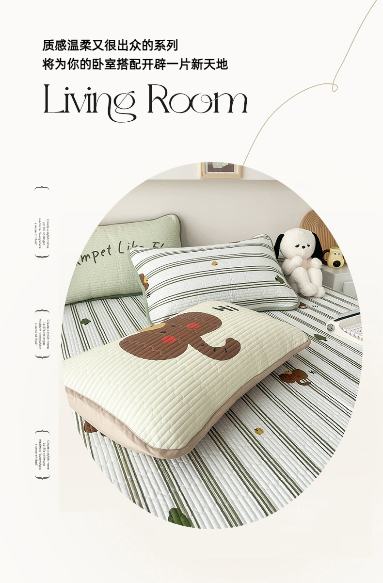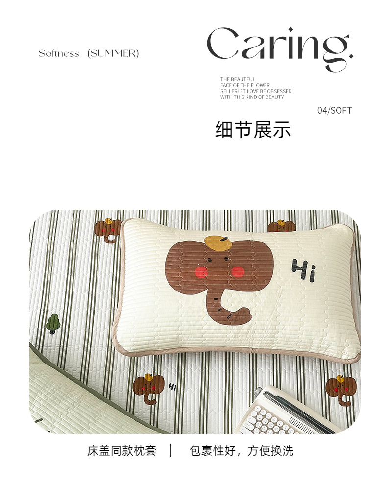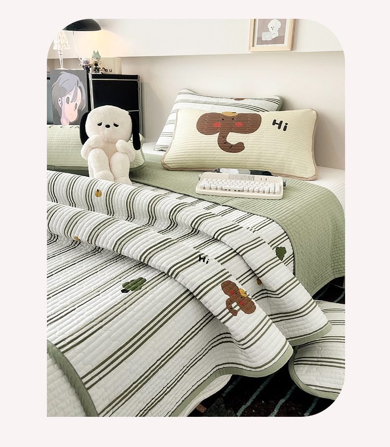 茉夕家纺 2024新款数码双面纯棉水洗床盖 顽皮象绿