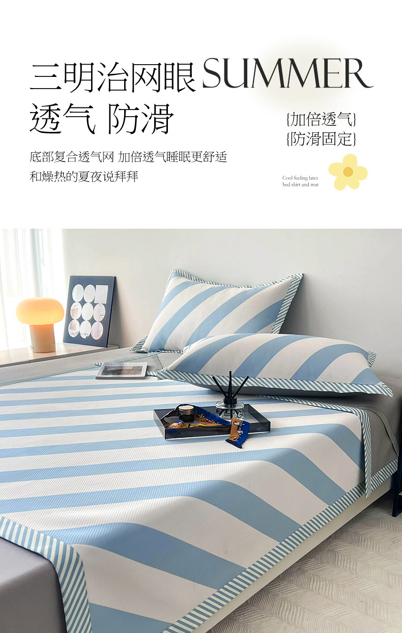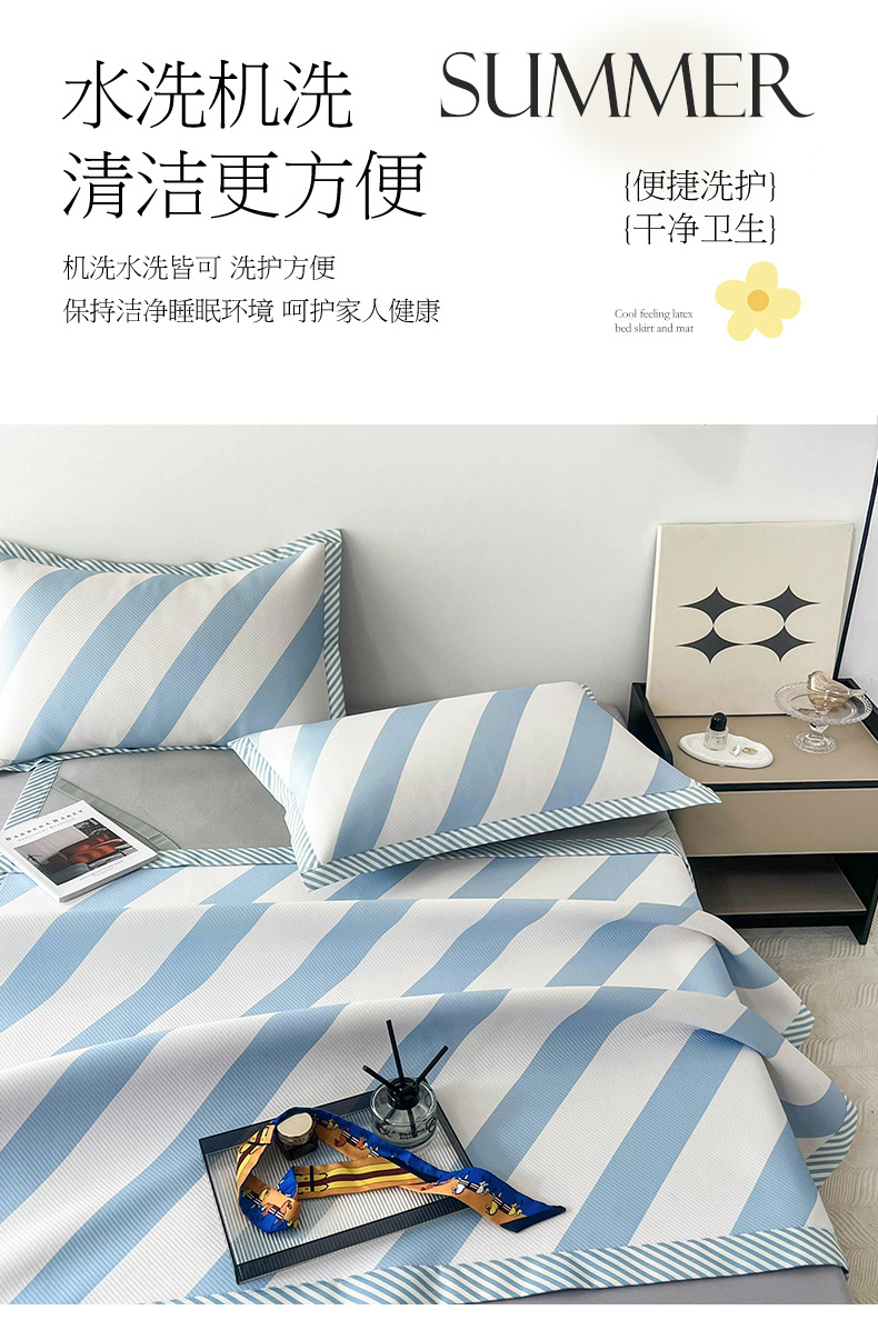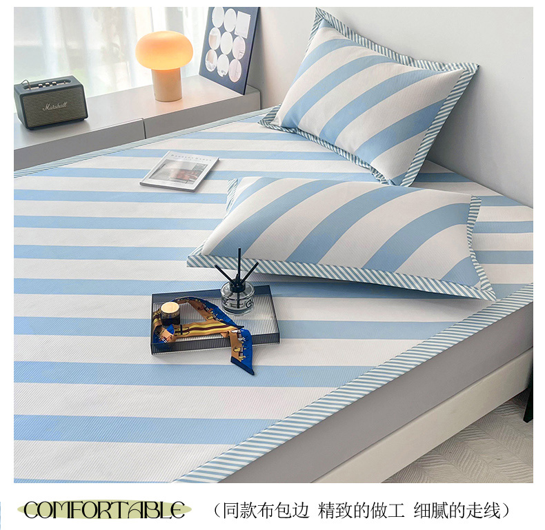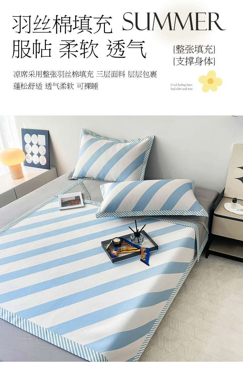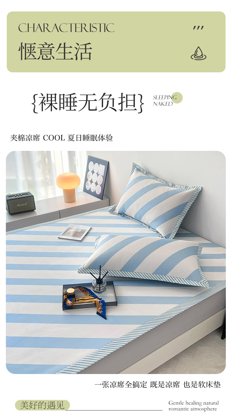 商品名称:倾慕家纺 2024新款北欧简约印花夹棉凉席 洛林-蓝