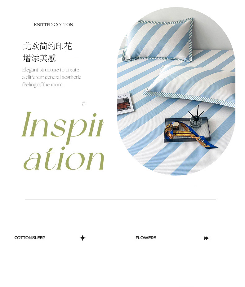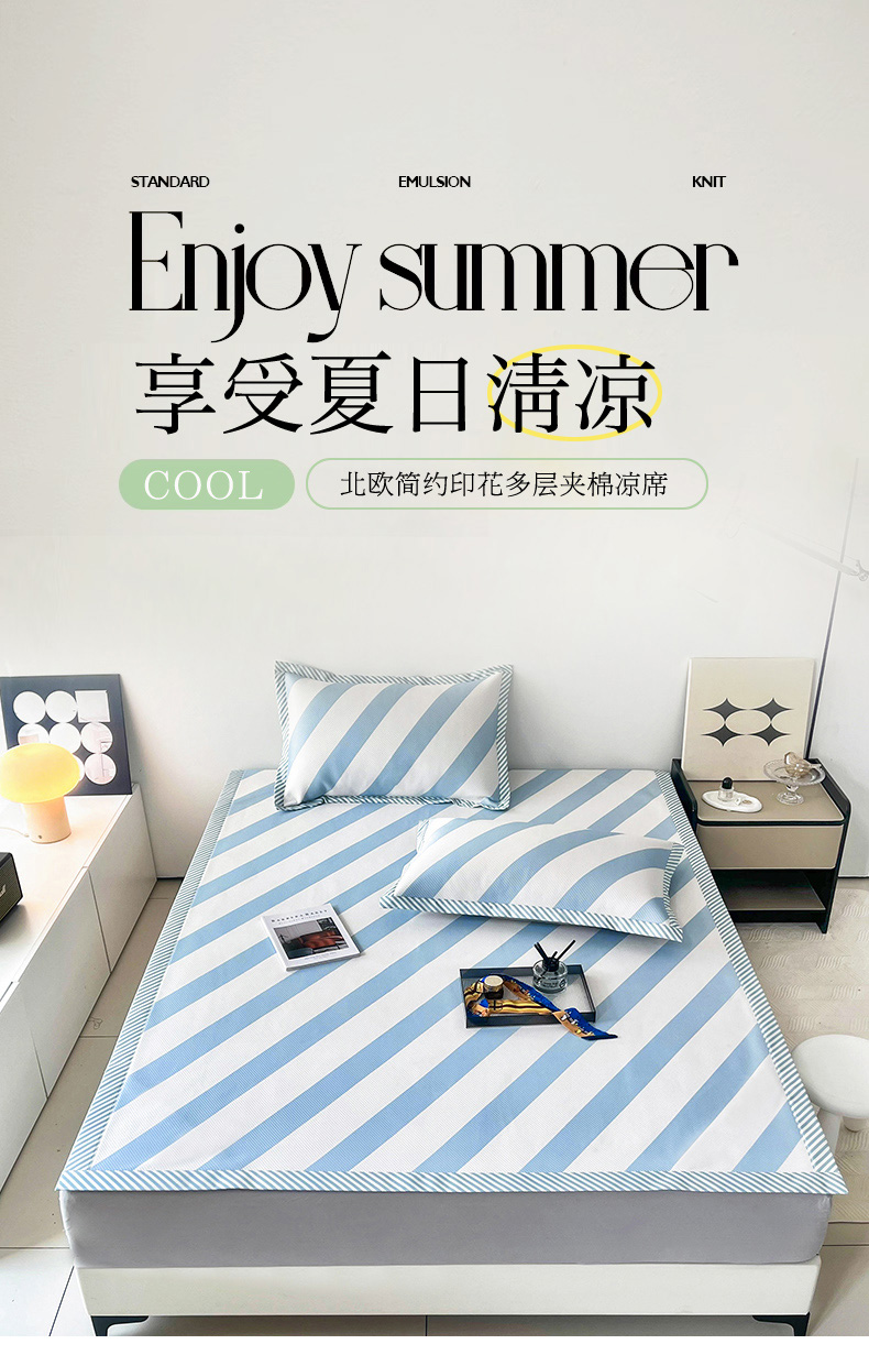 倾慕家纺 2024新款北欧简约印花夹棉凉席 洛林-蓝