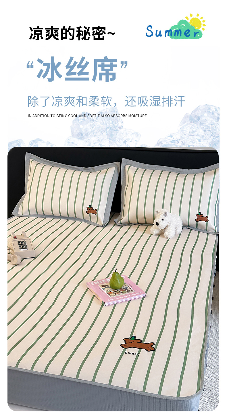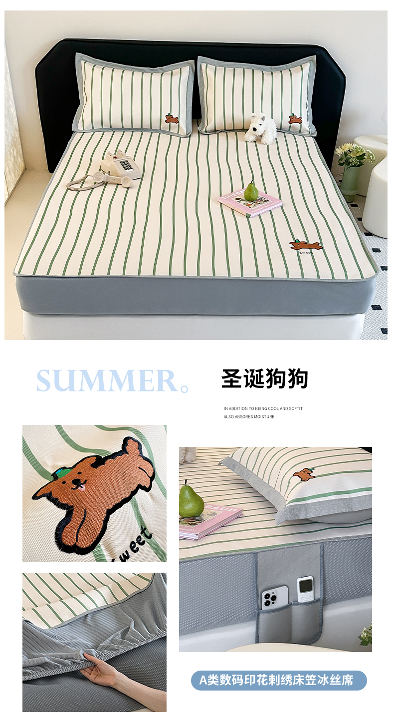 商品名称:昔可家纺 2024新款A类900D数码印花刺绣床笠款冰丝席 圣诞狗狗