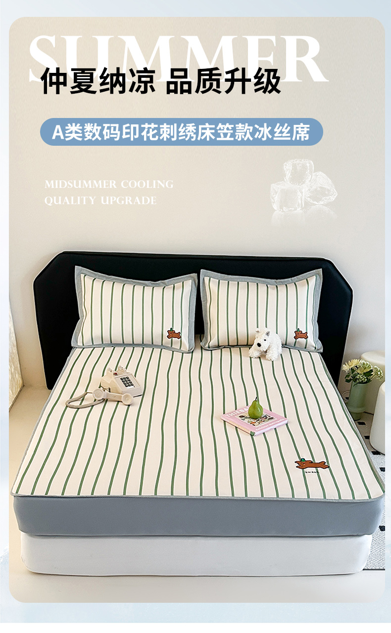 昔可家纺 2024新款A类900D数码印花刺绣床笠款冰丝席 圣诞狗狗