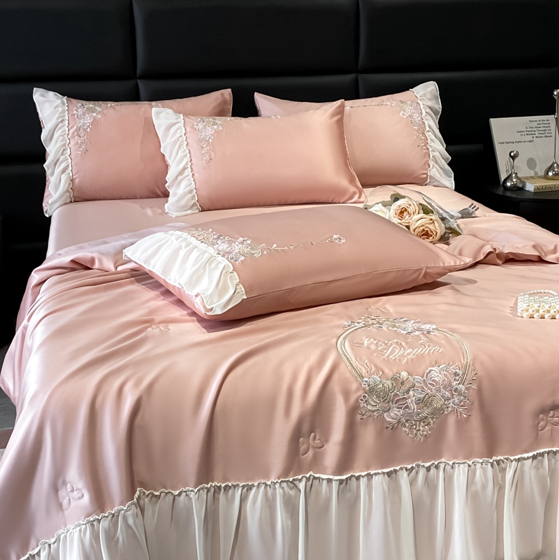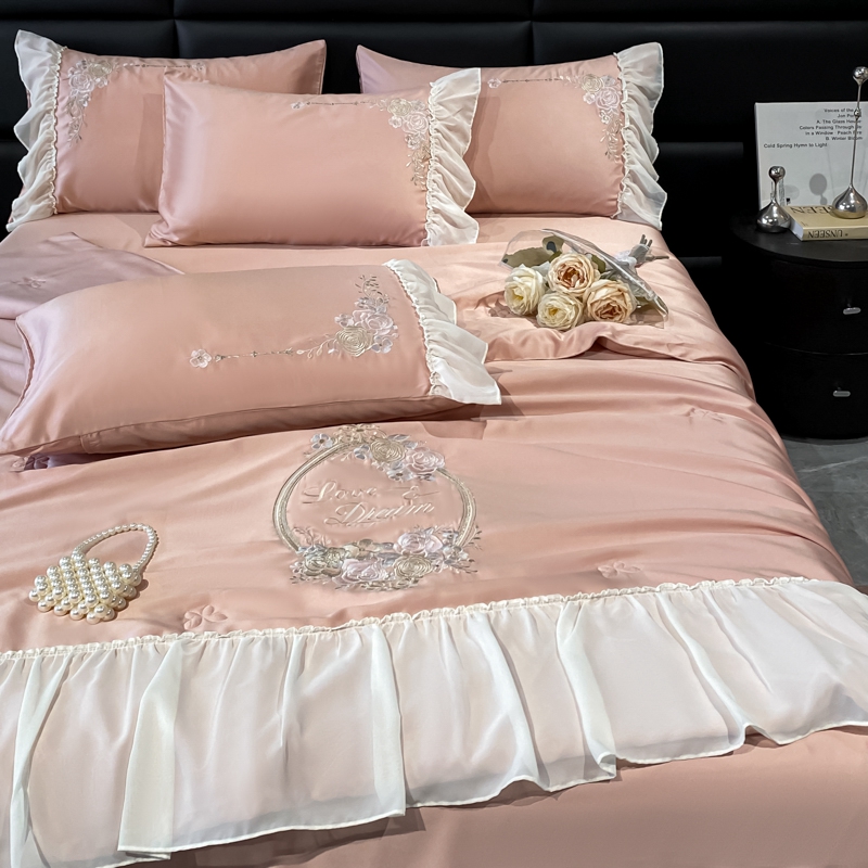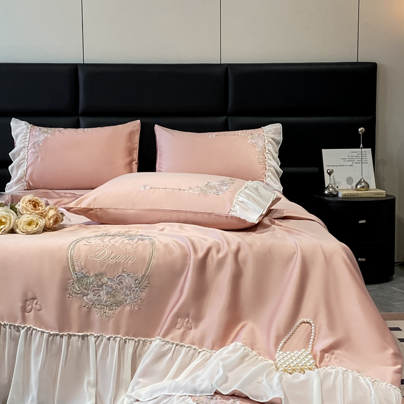 伊人居 2024新款蕾丝款夏被四件套-梦娜系列 梦娜-珍珠粉