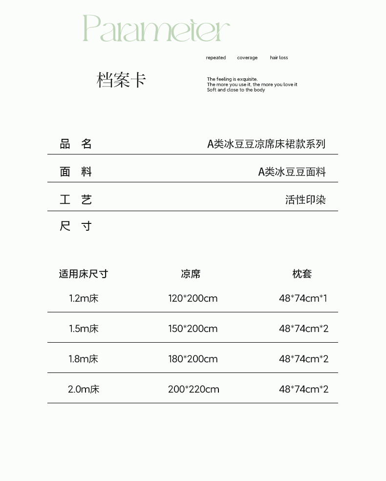 [{"sp_id":11,"sp_name":"\u989c\u8272\u5206\u7c7b","sp_format":2,"sp_list":[{"sp_value_id":52,"sp_value_name":"\u51b0\u8c46\u8c46-\u6843\u5b50\u7c89","sp_value_image":{"id":999,"path":"https:\/\/img3.91jf.com\/ghelp\/2024\/20240428\/f4b033d4-c028-4695-87b4-fa65cf5ff0b220240428090702395.jpg_30_30.jpg"},"sp_value_video":{"id":0,"img":"","path":"","time":0,"download_num":0,"play_num":0},"price":"48.00","storage":298,"weight":"1.000","is_check_weight":0,"plus_price":"","sp_sort":29}]},{"sp_id":29,"sp_name":"\u9002\u7528\u5e8a\u5c3a\u5bf8","sp_format":1,"sp_list":[{"sp_value_id":354,"sp_value_name":"\u51c9\u5e2d120*200cm\u4e24\u4ef6\u5957","sp_value_image":{"id":0,"path":""},"sp_value_video":{"id":0,"img":"","path":"","time":0,"download_num":0,"play_num":0},"price":"48.00","storage":0,"weight":"1.000","is_check_weight":0,"plus_price":"","sp_sort":6},{"sp_value_id":355,"sp_value_name":"\u51c9\u5e2d150*200cm\u4e09\u4ef6\u5957 ","sp_value_image":{"id":0,"path":""},"sp_value_video":{"id":0,"img":"","path":"","time":0,"download_num":0,"play_num":0},"price":"60.00","storage":100,"weight":"1.500","is_check_weight":0,"plus_price":"","sp_sort":7},{"sp_value_id":357,"sp_value_name":"\u51c9\u5e2d180*200cm\u4e09\u4ef6\u5957","sp_value_image":{"id":0,"path":""},"sp_value_video":{"id":0,"img":"","path":"","time":0,"download_num":0,"play_num":0},"price":"65.00","storage":99,"weight":"2.140","is_check_weight":0,"plus_price":"","sp_sort":9},{"sp_value_id":358,"sp_value_name":"\u51c9\u5e2d200*220cm\u4e09\u4ef6\u5957","sp_value_image":{"id":0,"path":""},"sp_value_video":{"id":0,"img":"","path":"","time":0,"download_num":0,"play_num":0},"price":"75.00","storage":99,"weight":"2.520","is_check_weight":0,"plus_price":"","sp_sort":10}]}]