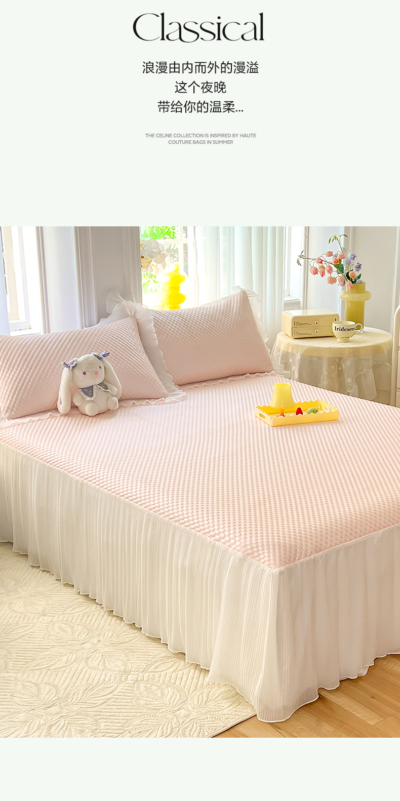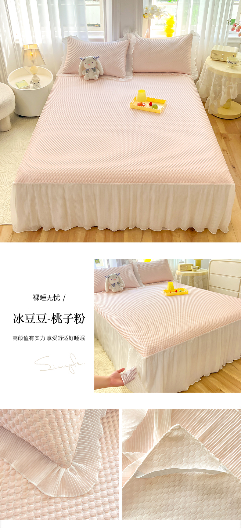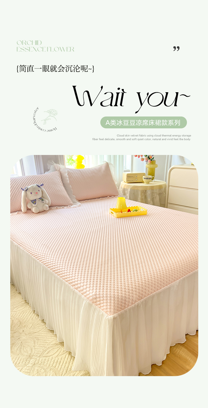 商品名称:逸尚阁 2025新款A类冰豆豆凉席床裙款系列 冰豆豆-桃子粉