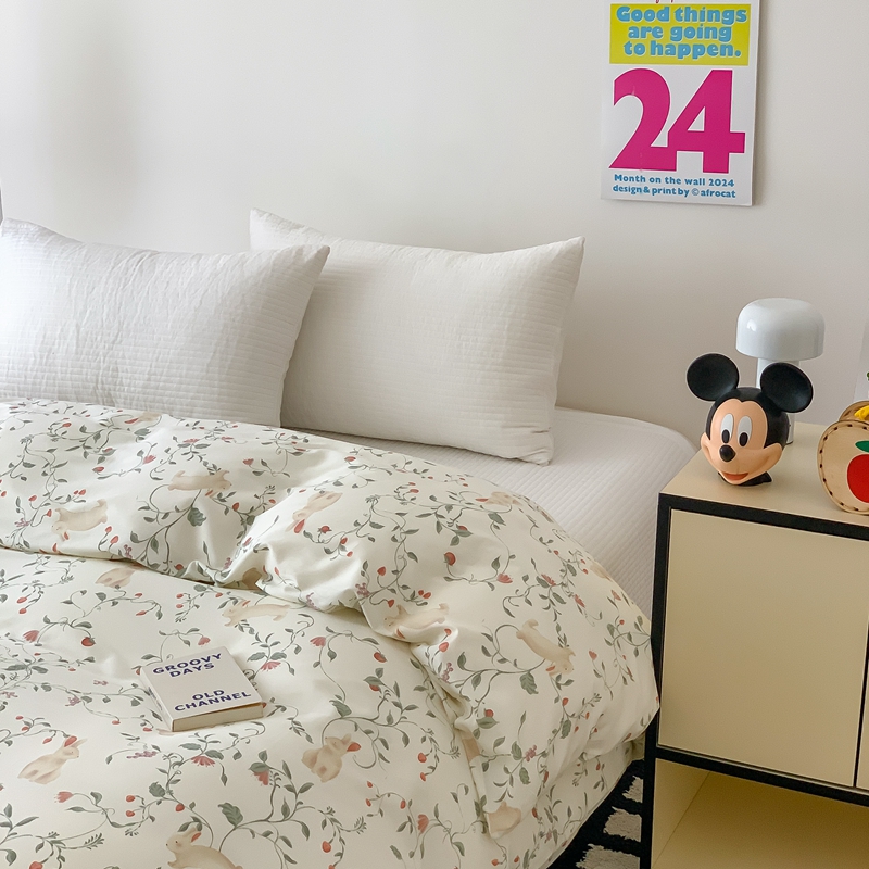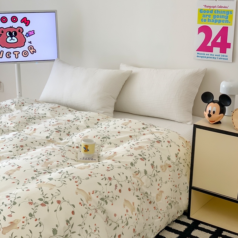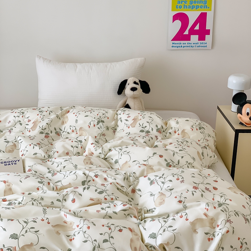 窝米 2024新款韩国设计师卡通手绘单品被套系列 月德兔